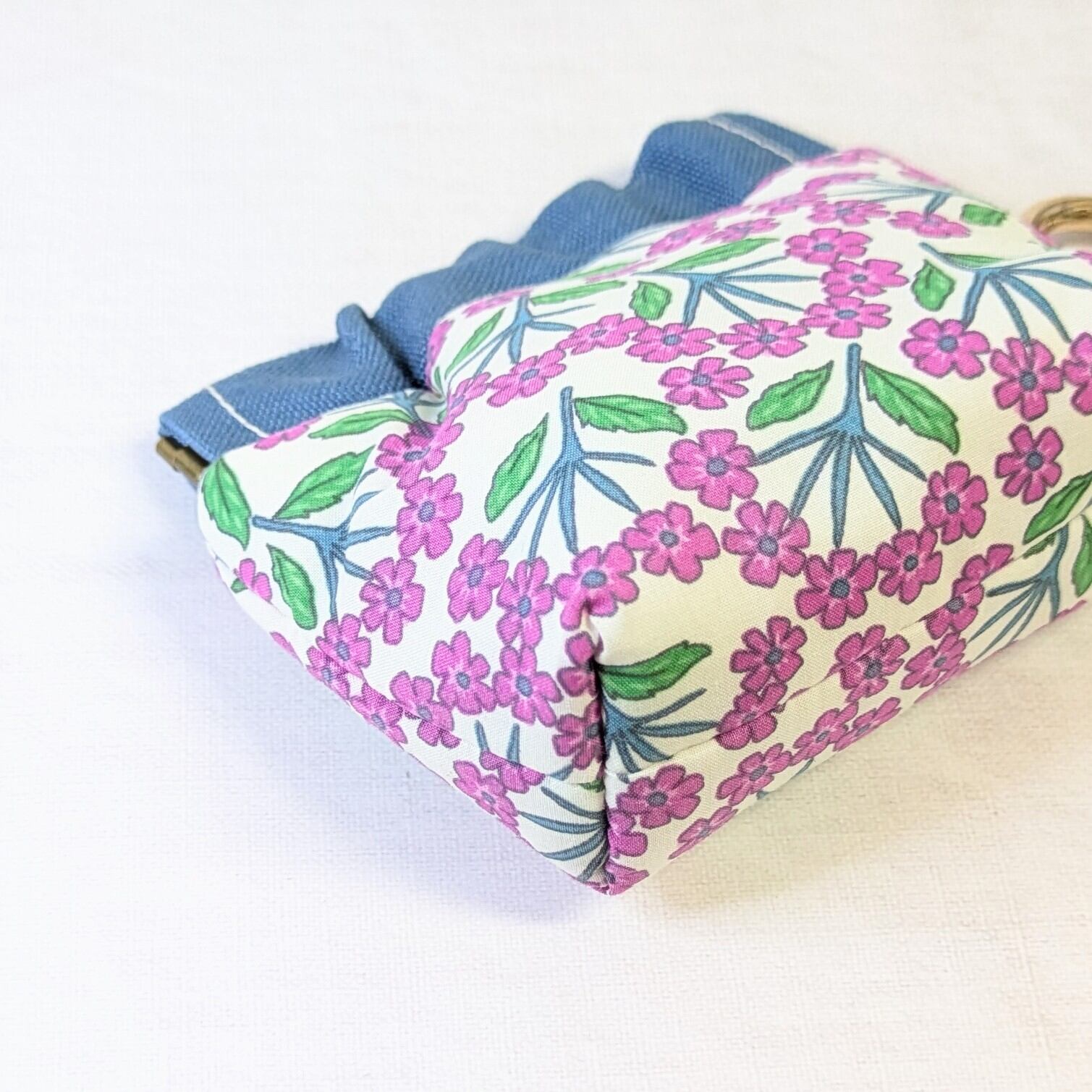 【Angela】さん / カラビナ付きミニバネ口ポーチ (小花・ピンク)
