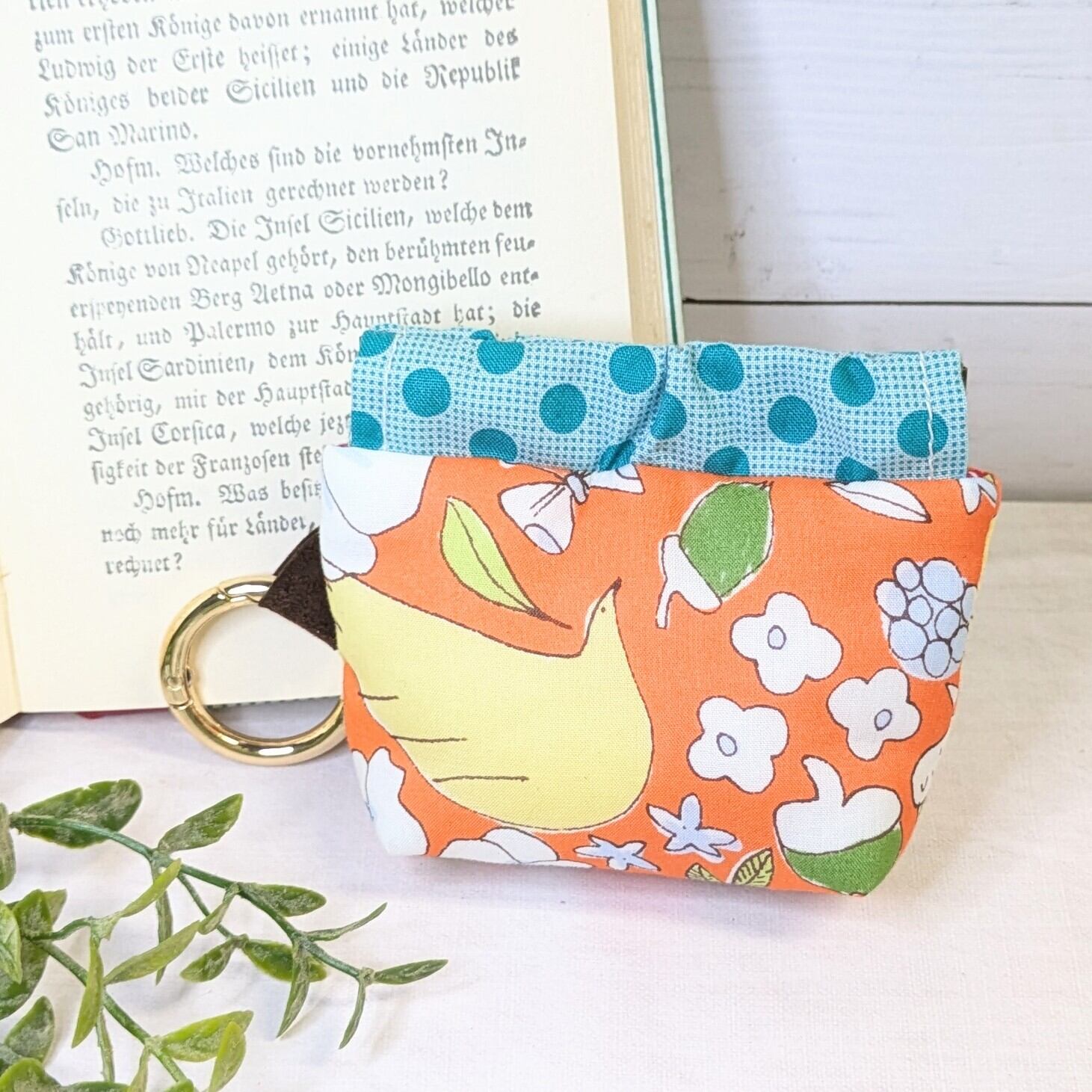【Angela】さん / カラビナ付きミニバネ口ポーチ (バード・オレンジ)