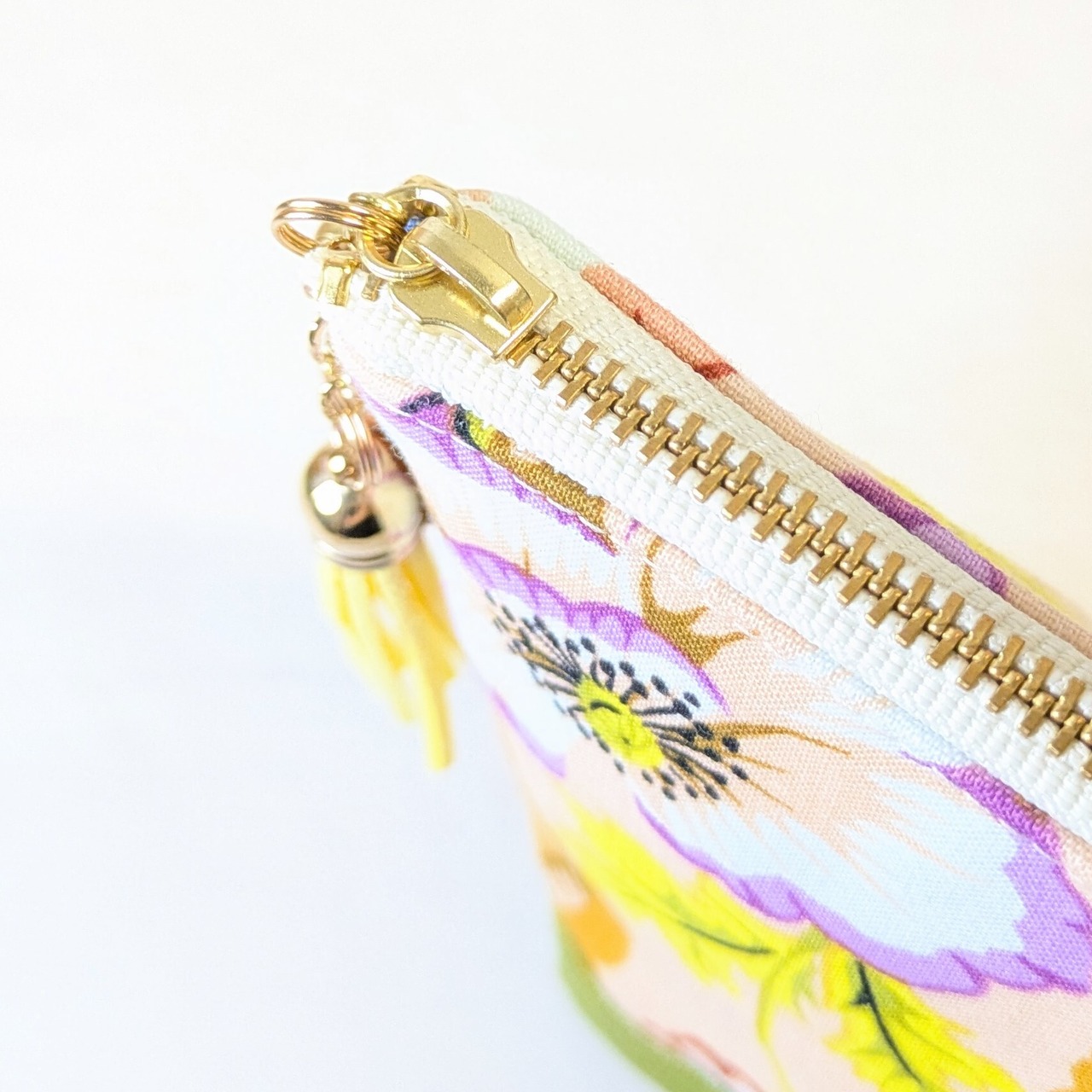 米国デザイナー『Kaffe Fassett』(ケイフ・ファセット)によるはっとするような美しいテキスタイルが主役の台形ポーチです。
