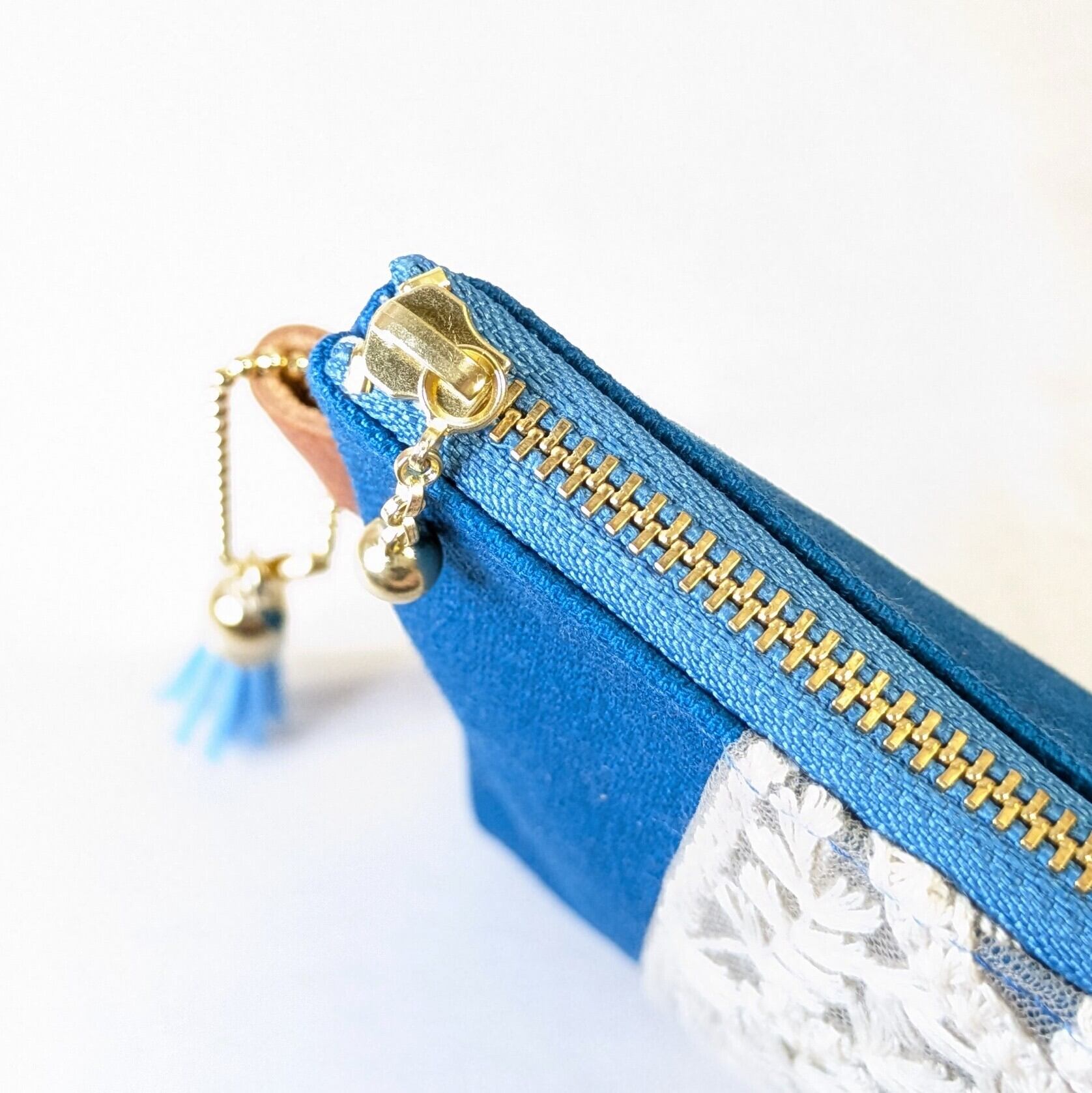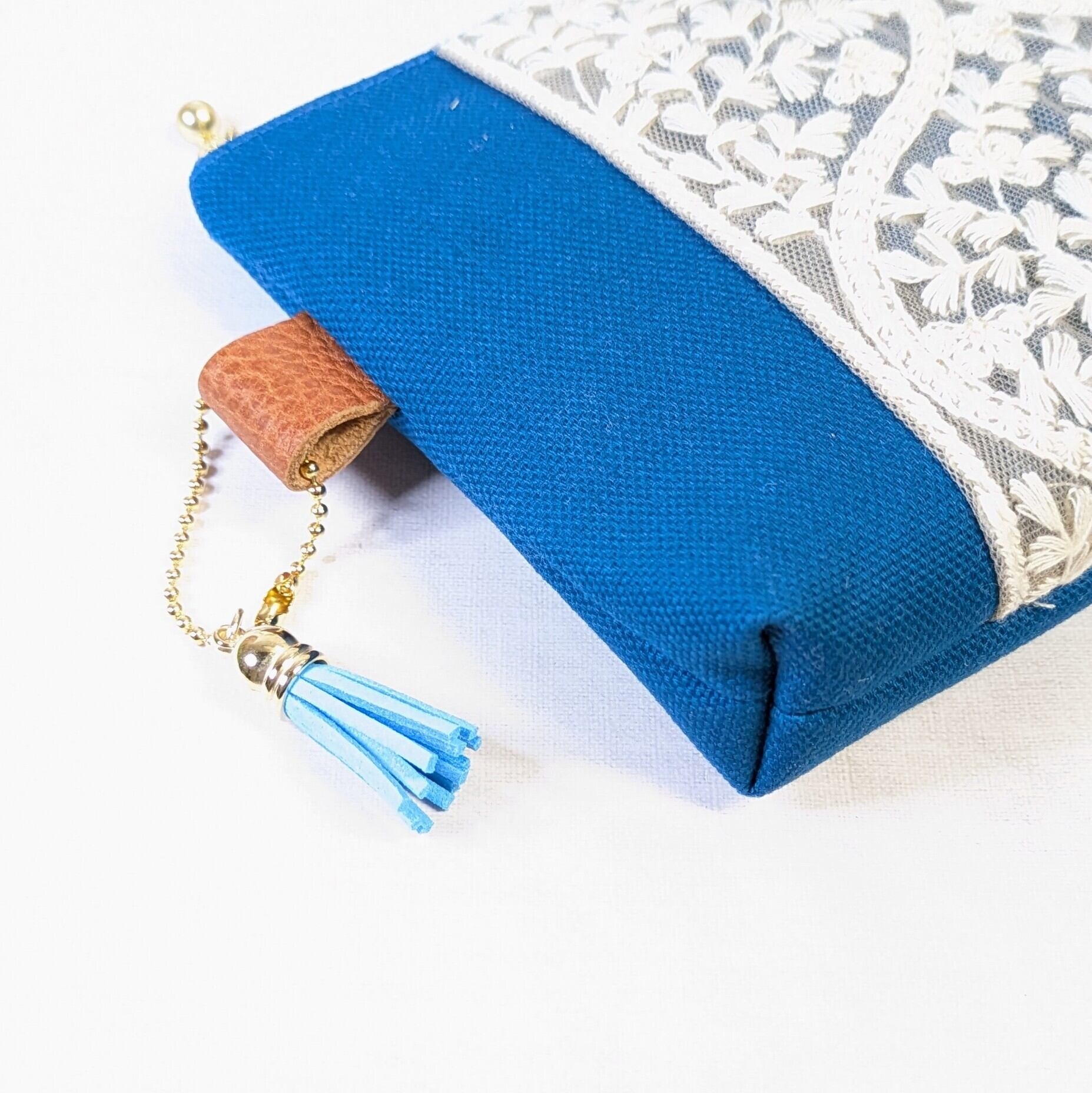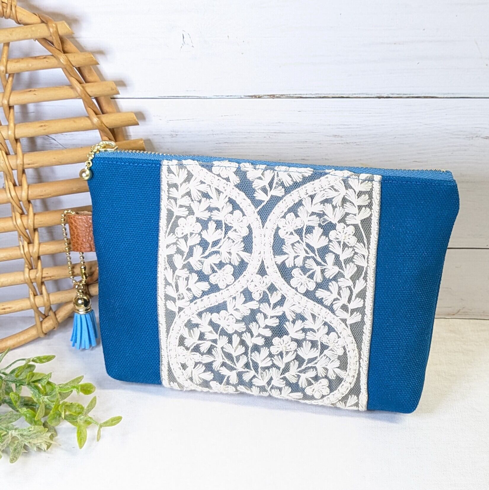 【Atelier Ku】さん / インド刺繍リボンファスナーポーチ (ブルー)