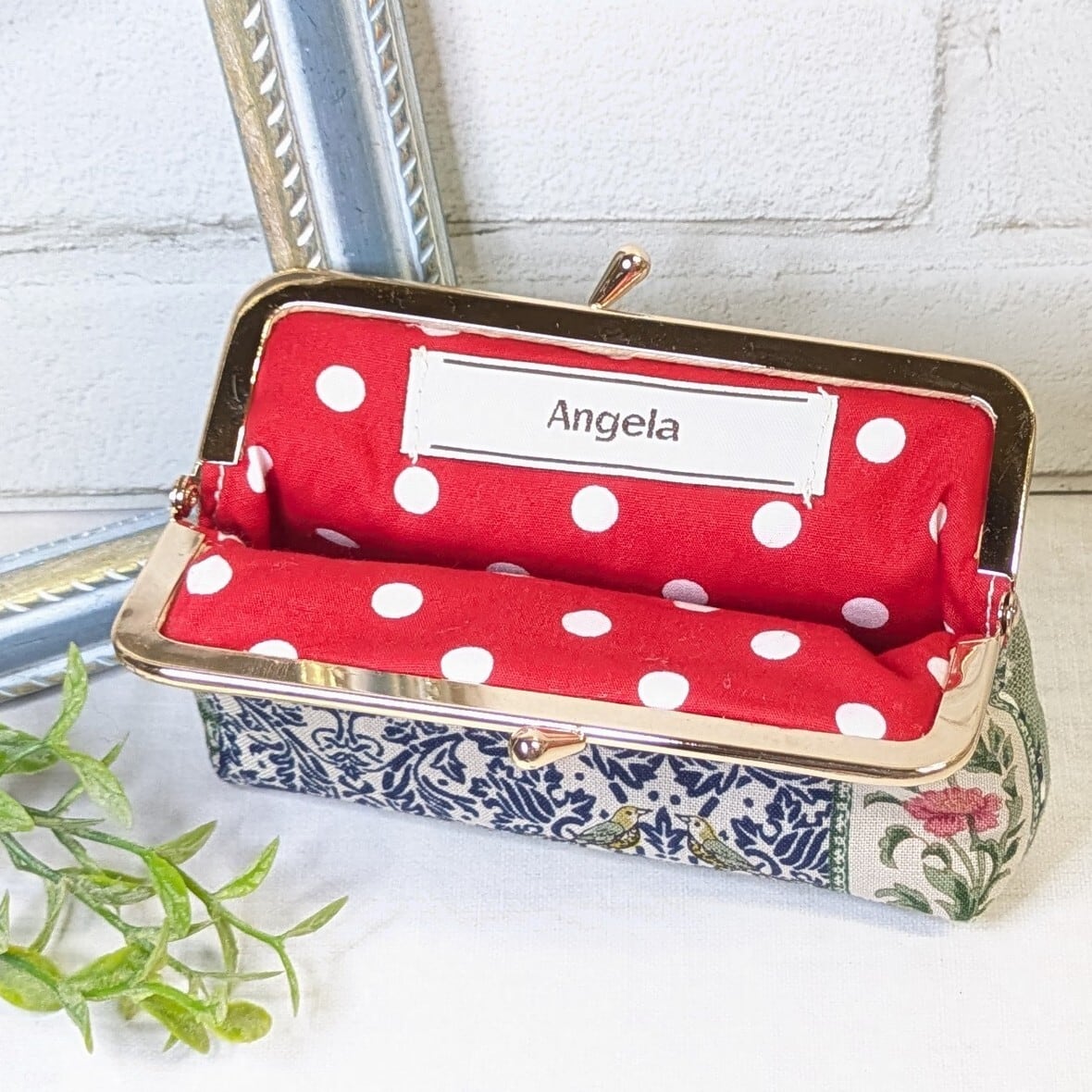 【Angela】さん / カードサイズミニがま口ポーチ (パッチワーク/ネイビー)