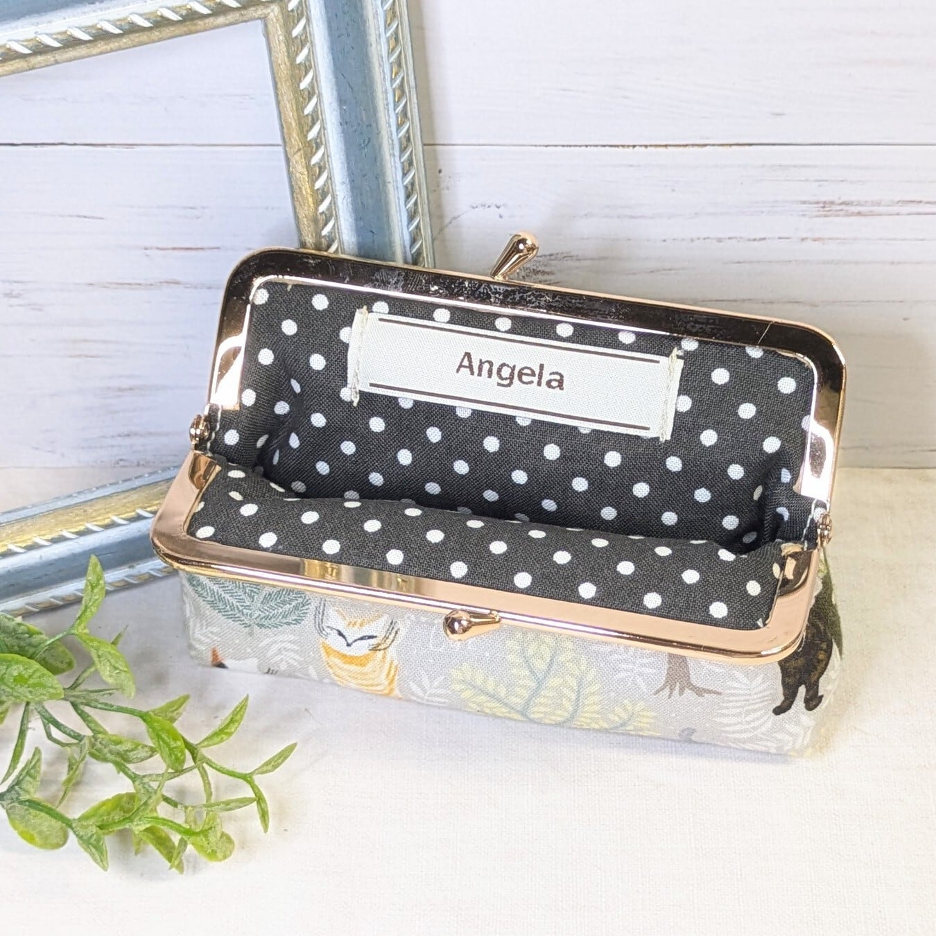 淡いグレーの地に優しい色の猫と植物のイラストがプリントがプリントされている生地。