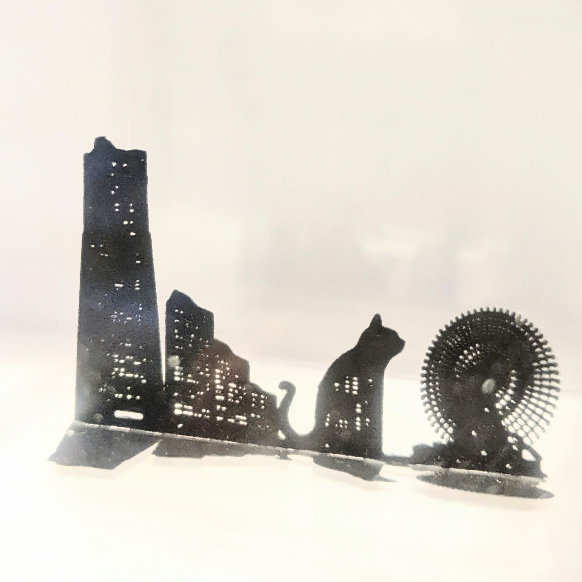 作品それぞれに影部分をつけ、垂直に立たせた立体オブジェ。どれもユニークなデザインです。