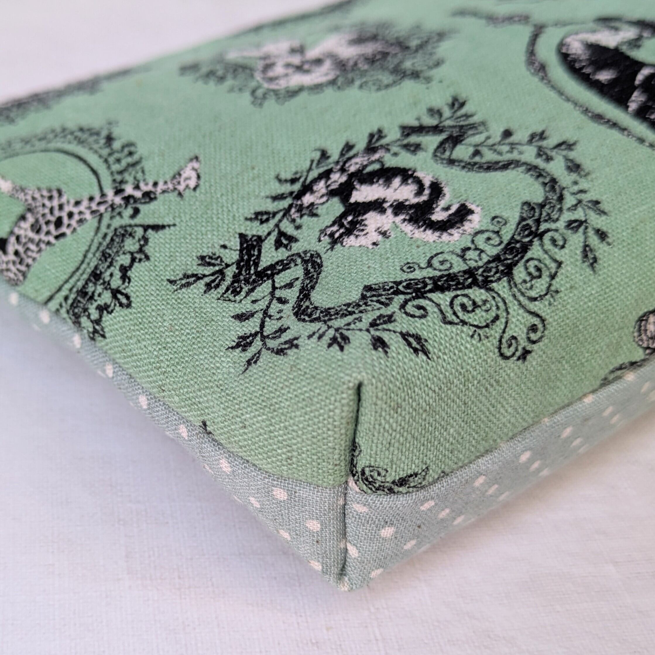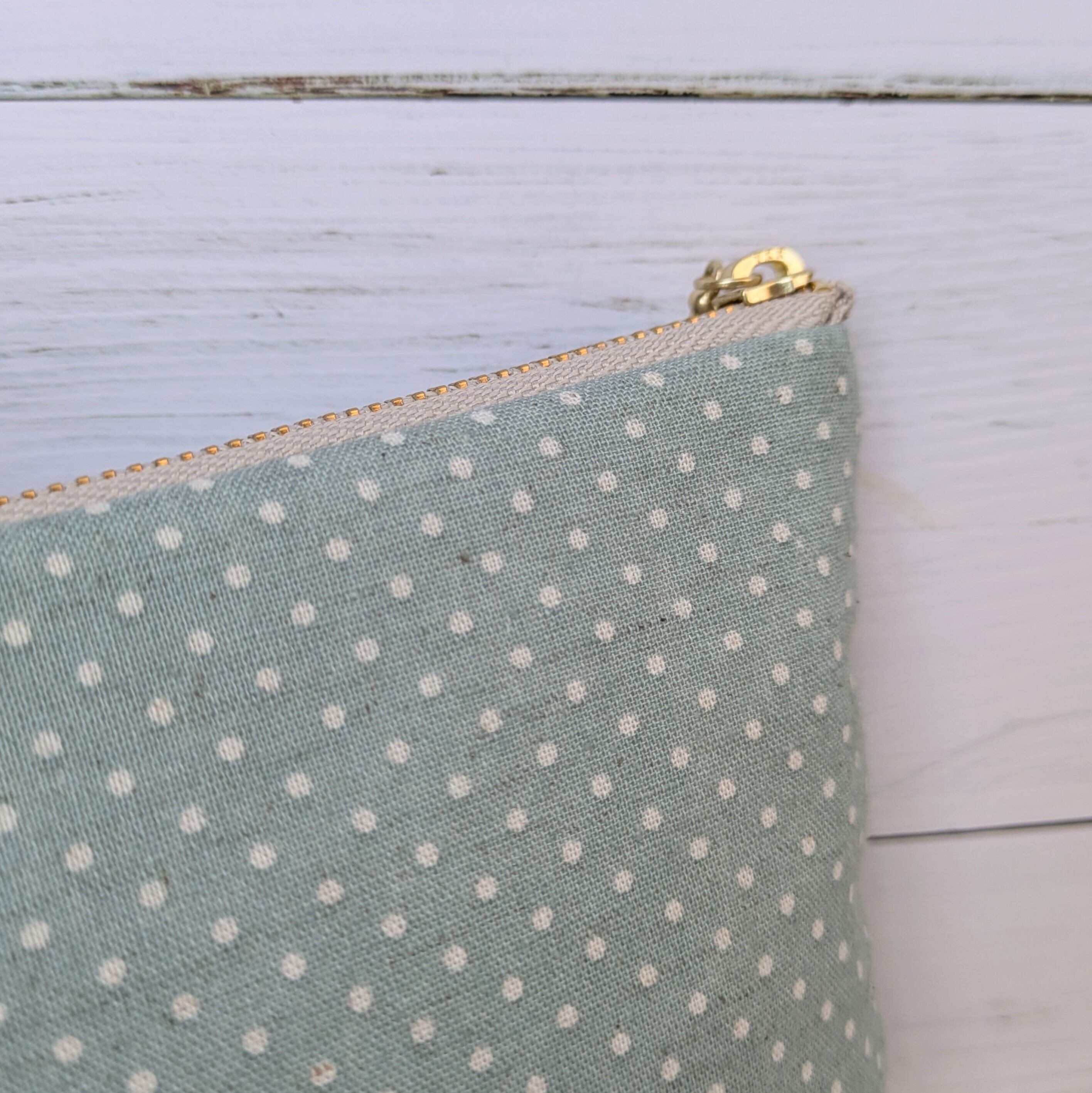 淡いグリーン地に小さな白のドット柄の綿麻生地を使用