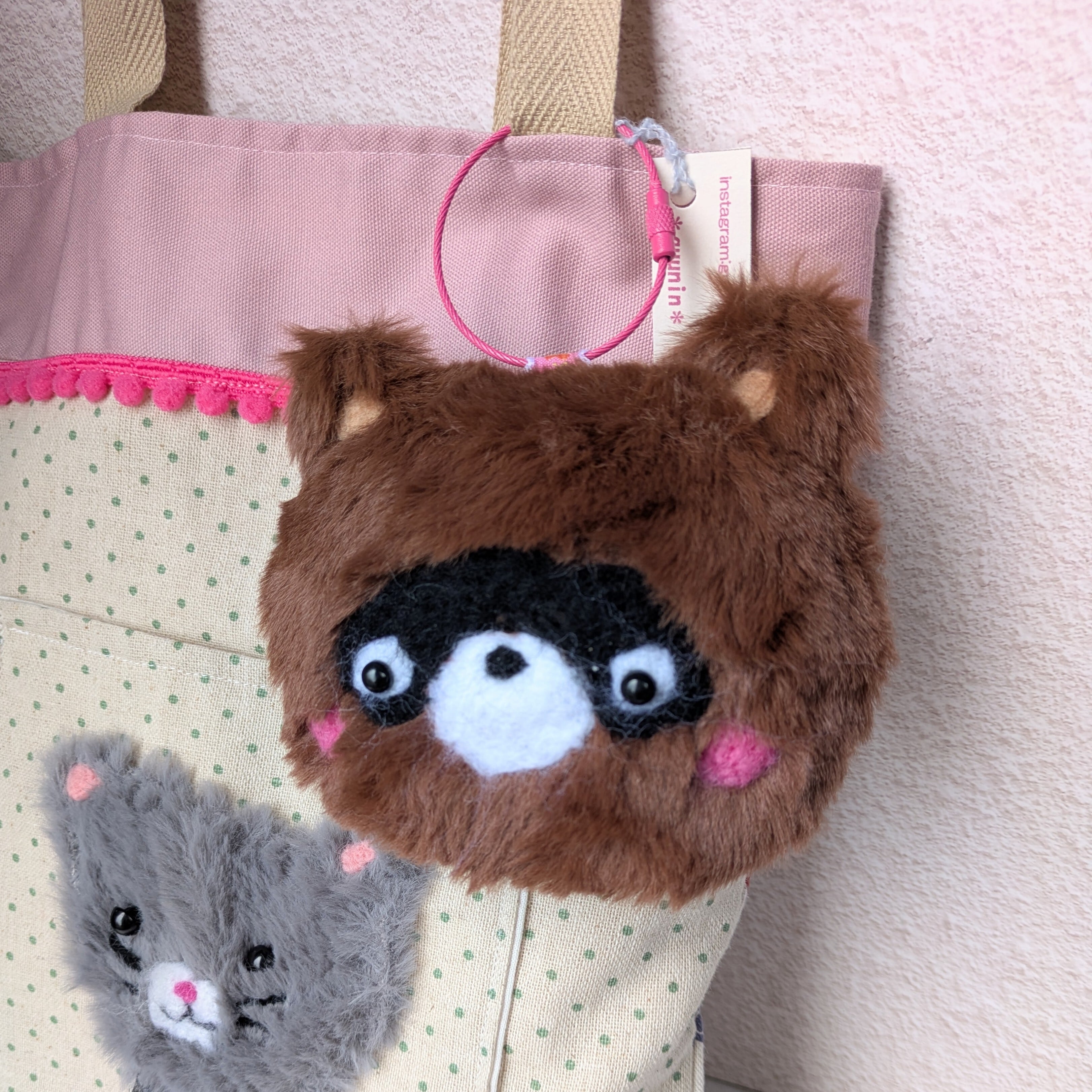 ふわふわふかふかのファーが主体ですが、鼻周りや耳など羊毛をちくちくと整えて作られた部分も。