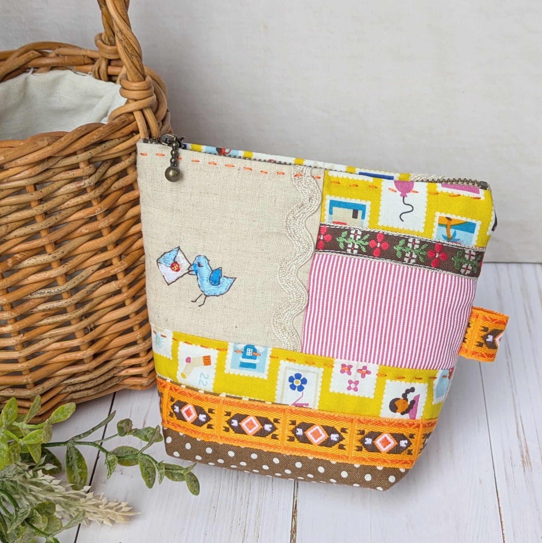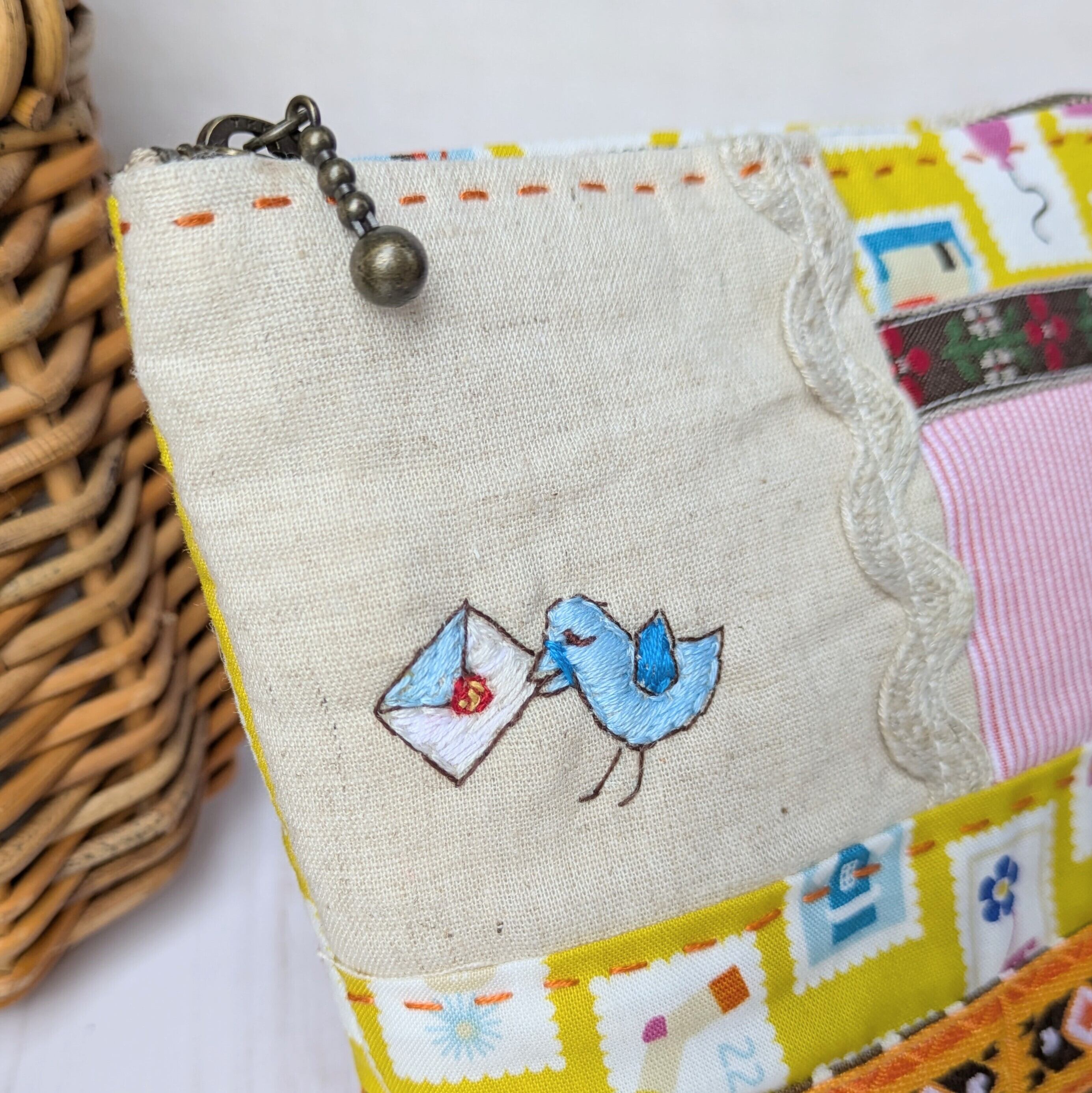 【pig tails】さん / ファスナーポーチ・S (手紙と青い鳥)