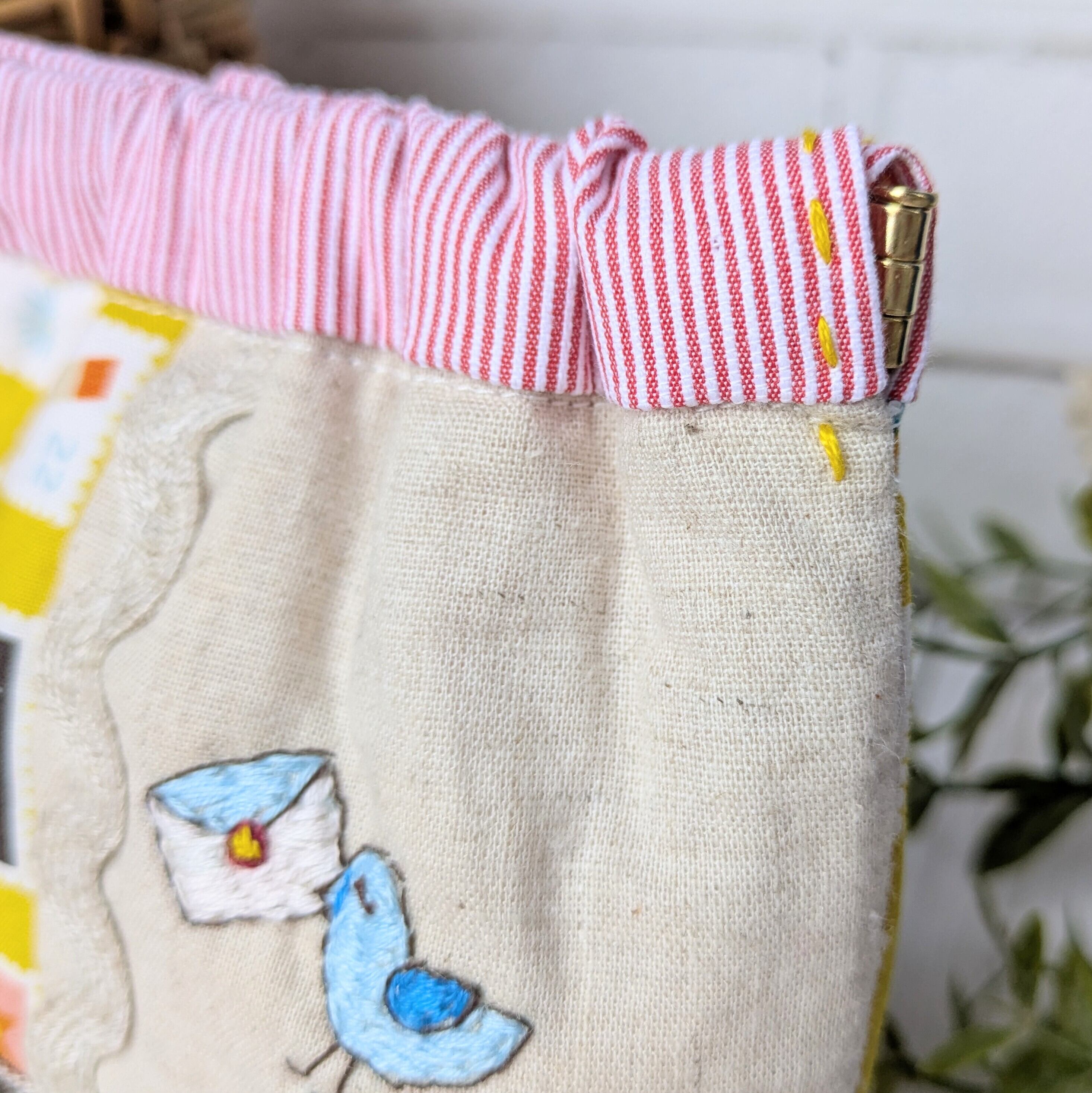 【pig tails】さん / ばね口ポーチ・刺繍入り(手紙と青い鳥)