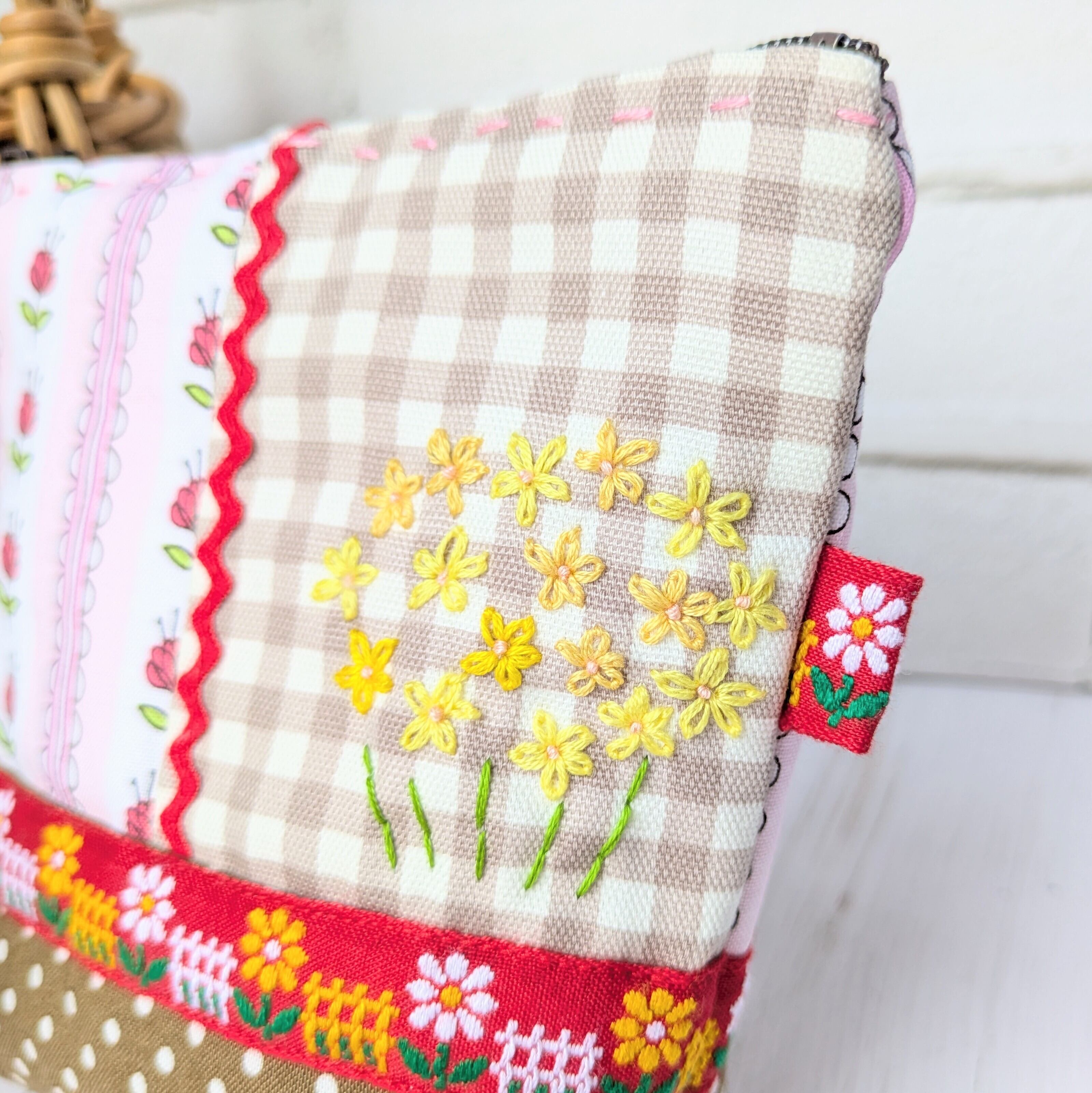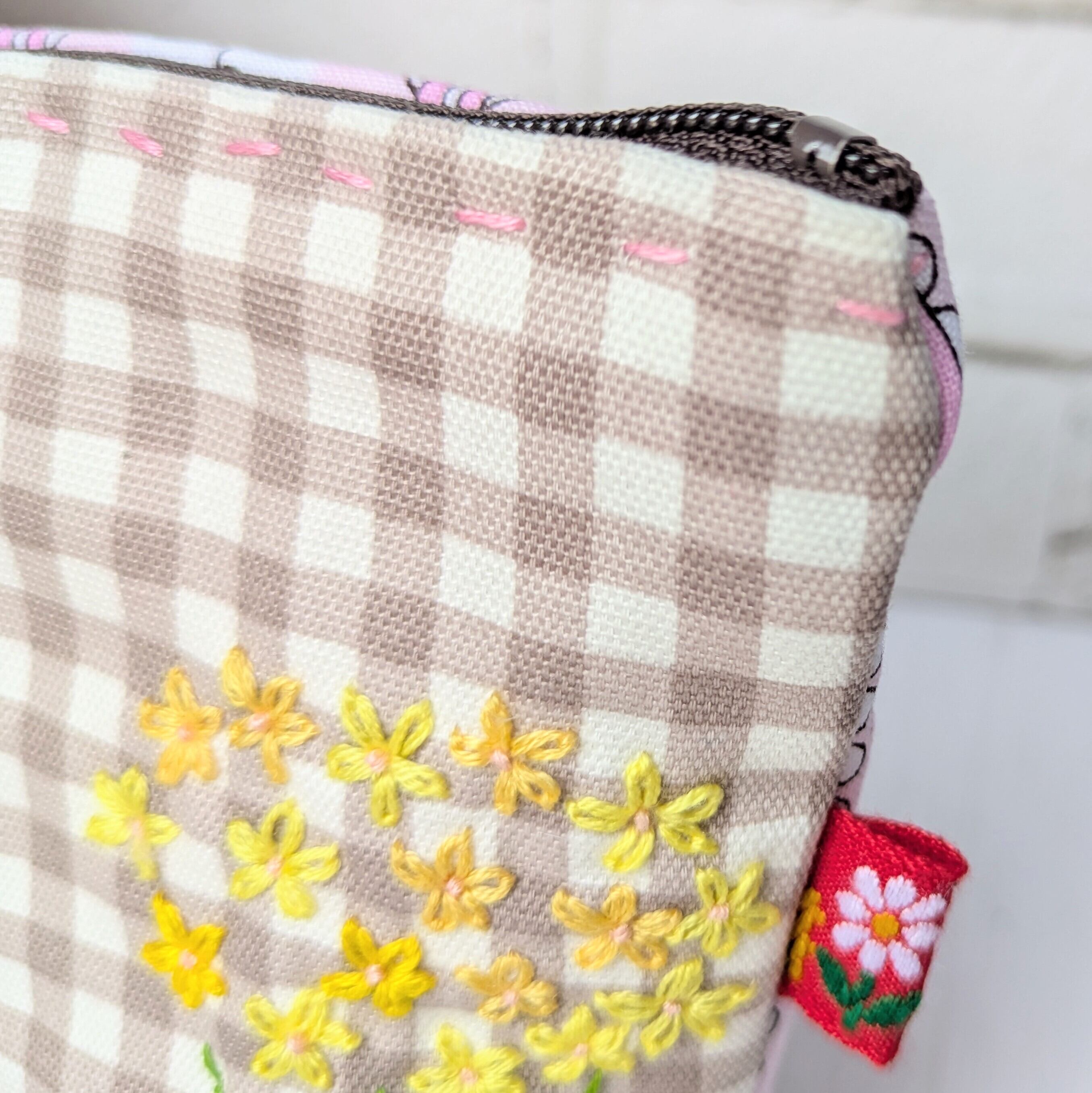 黄色の小さなお花の刺繍に心和むポーチ♪