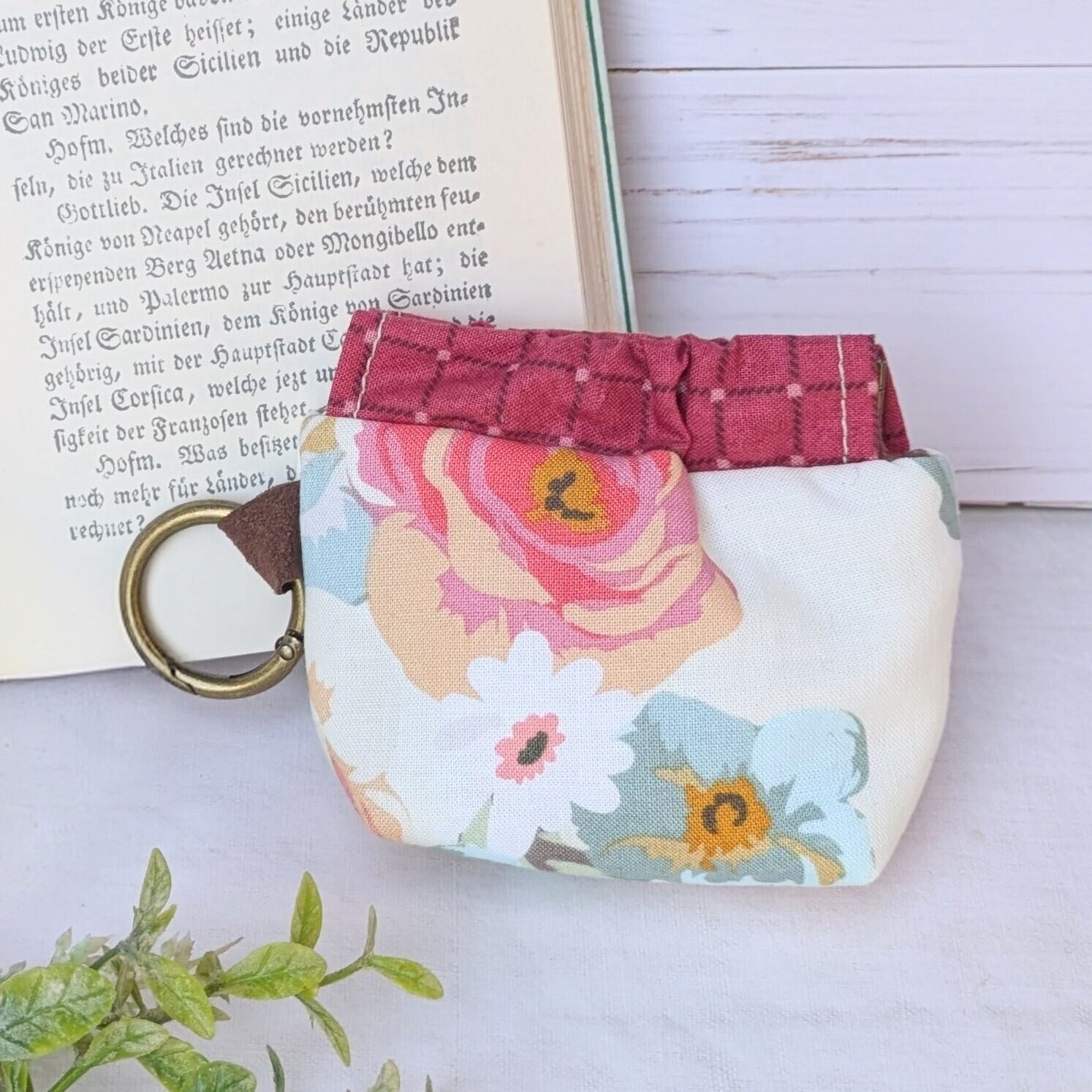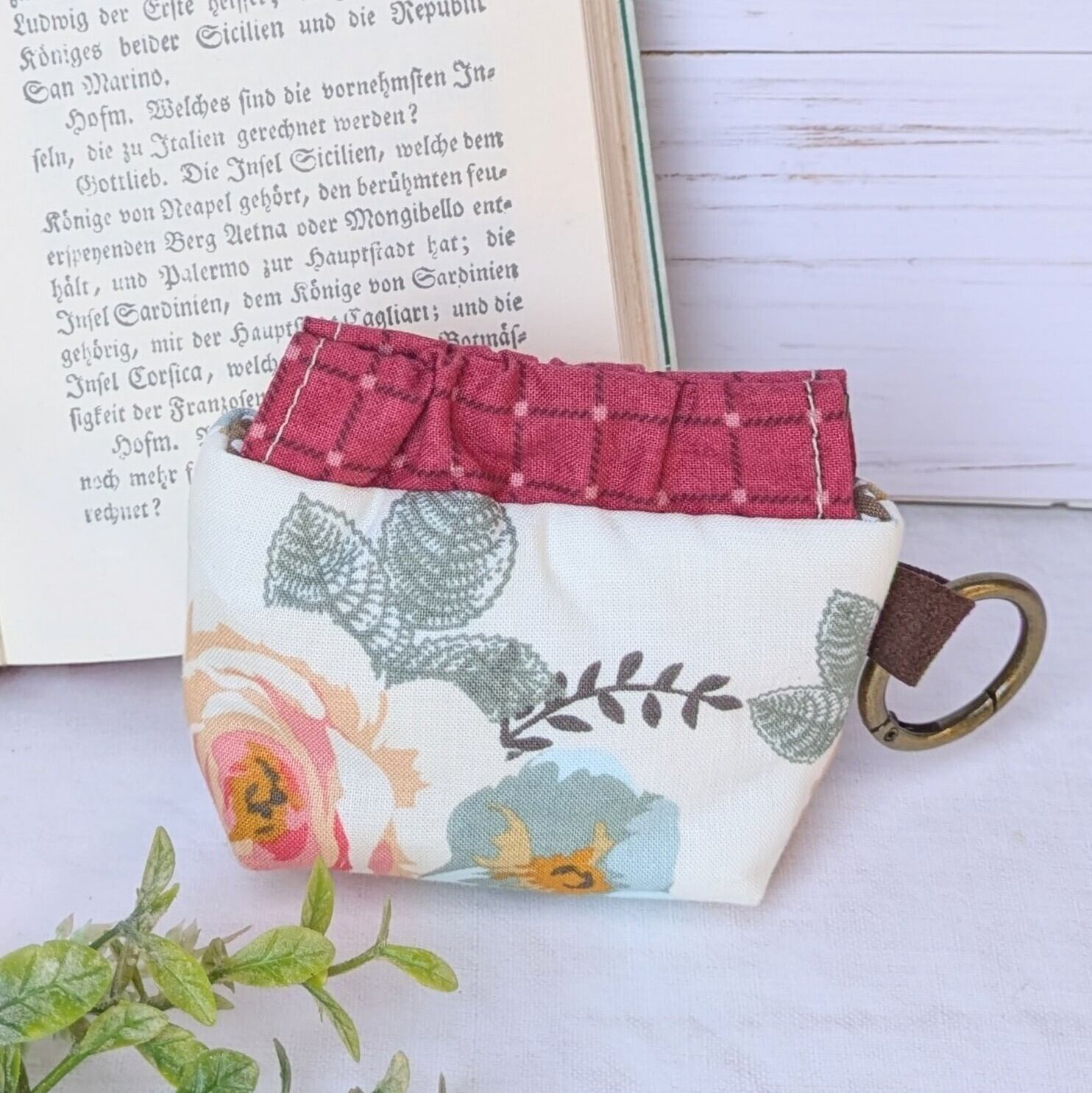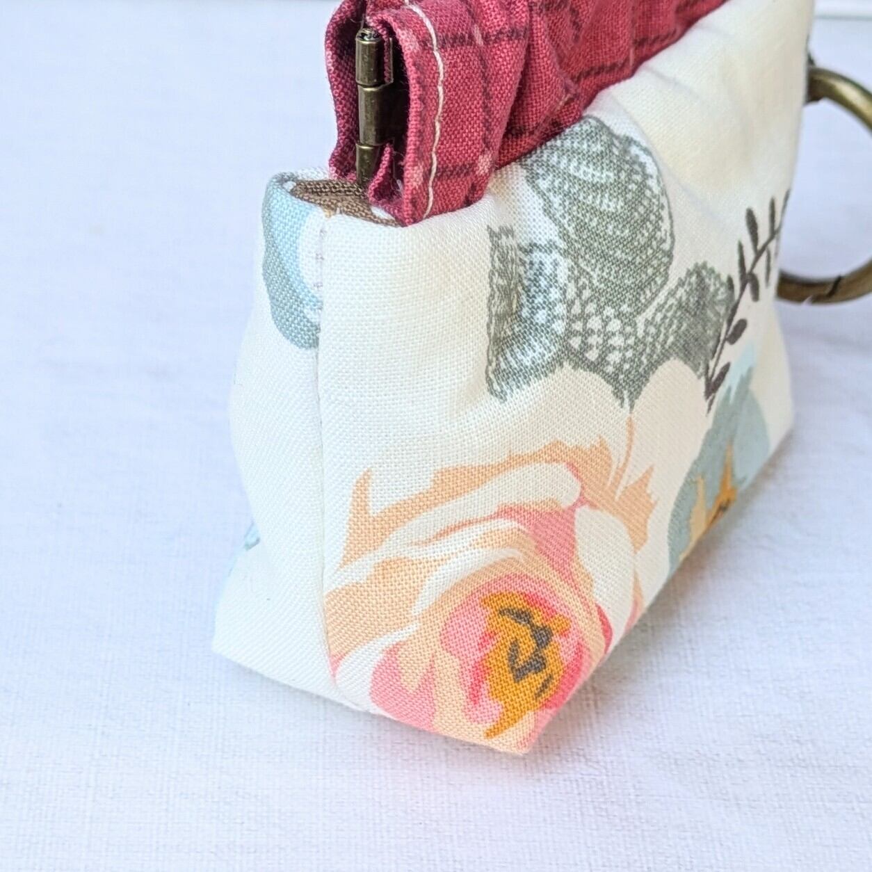 【Angela】さん / カラビナ付きミニバネ口ポーチ (クラシカルローズ・オフホワイト)