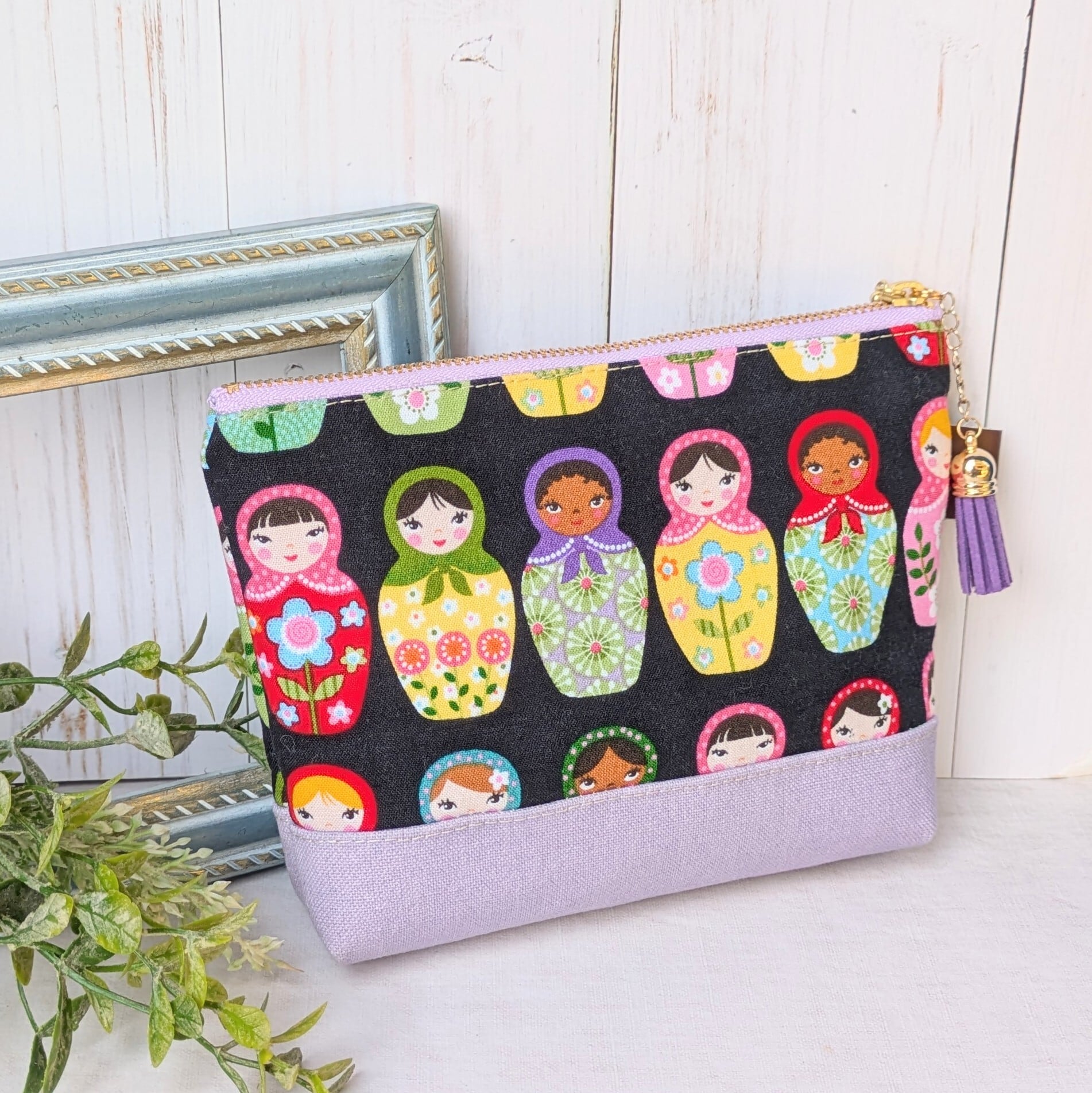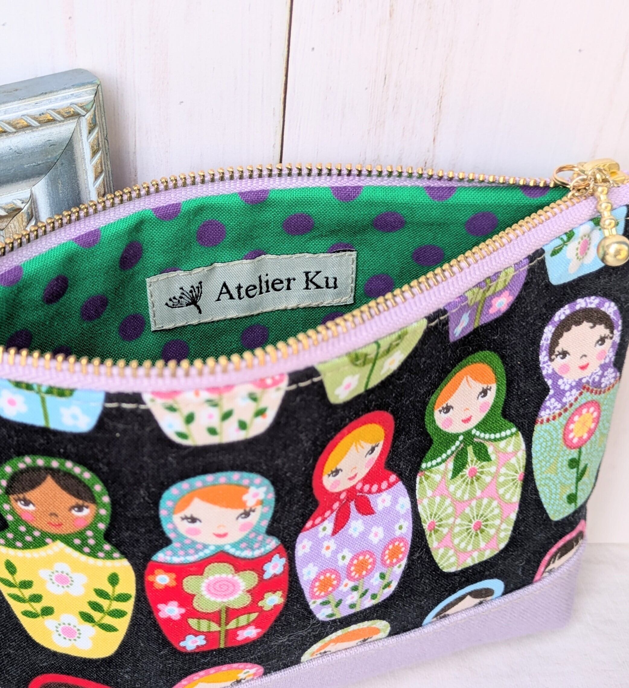 【Atelier Ku】さん / ファスナーポーチ(マトリョーシカ・パープル)
