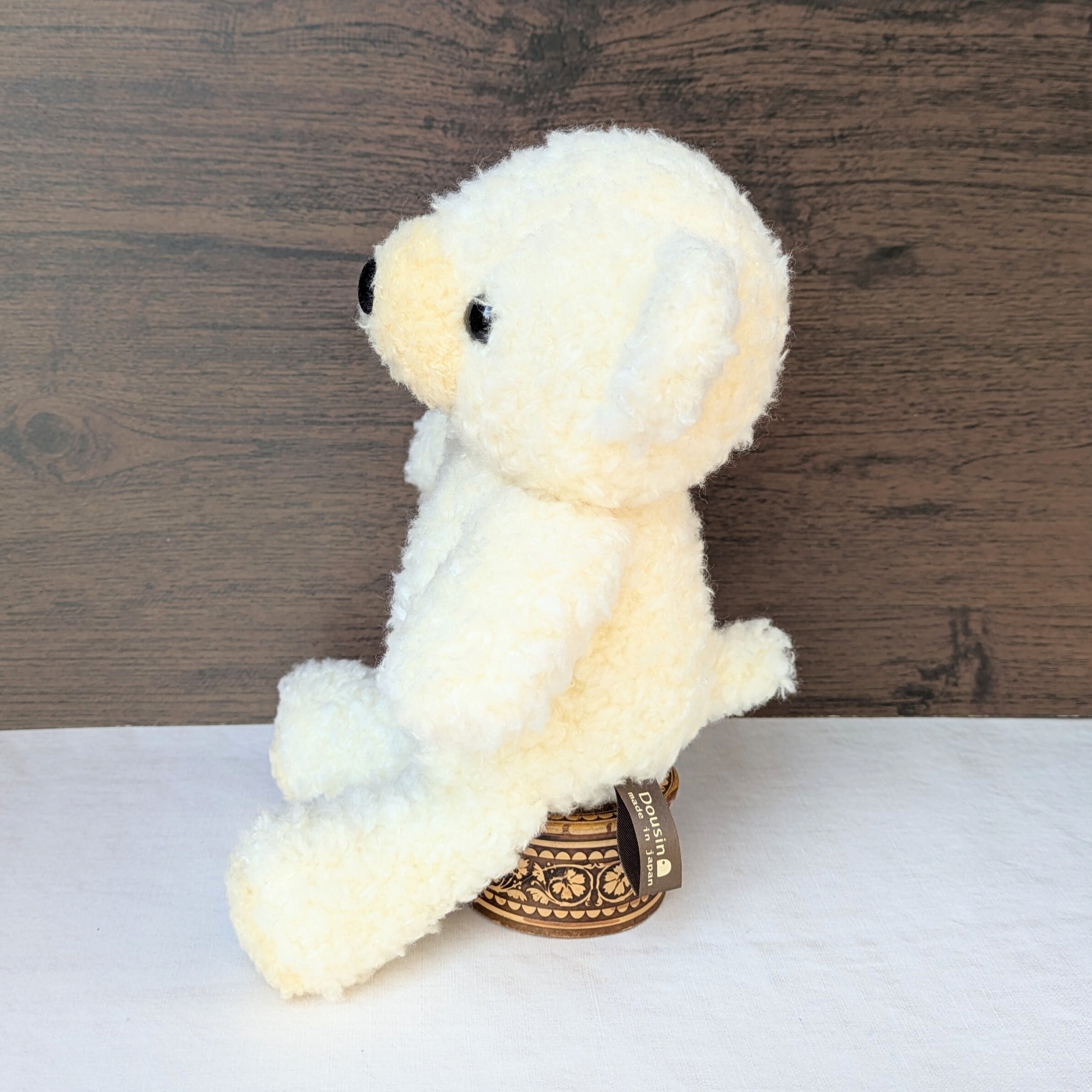 自立はしないつくりですが、寄り掛からせたりして様々なポーズを楽しめます。バッグに入れたり抱えたり、ぜひお出掛けのお供にもしてくださいね。