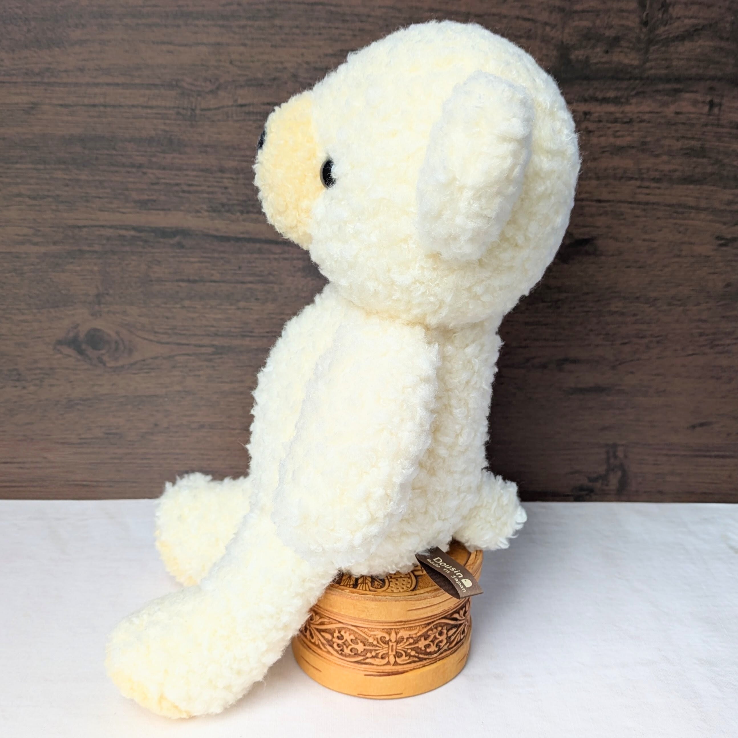 ボディなどに綿を手詰めし、目引きと呼ばれる工程も経て一体一体の表情出しを丁寧に行って作られています。(栃木県矢板市の工場にて製造されています)