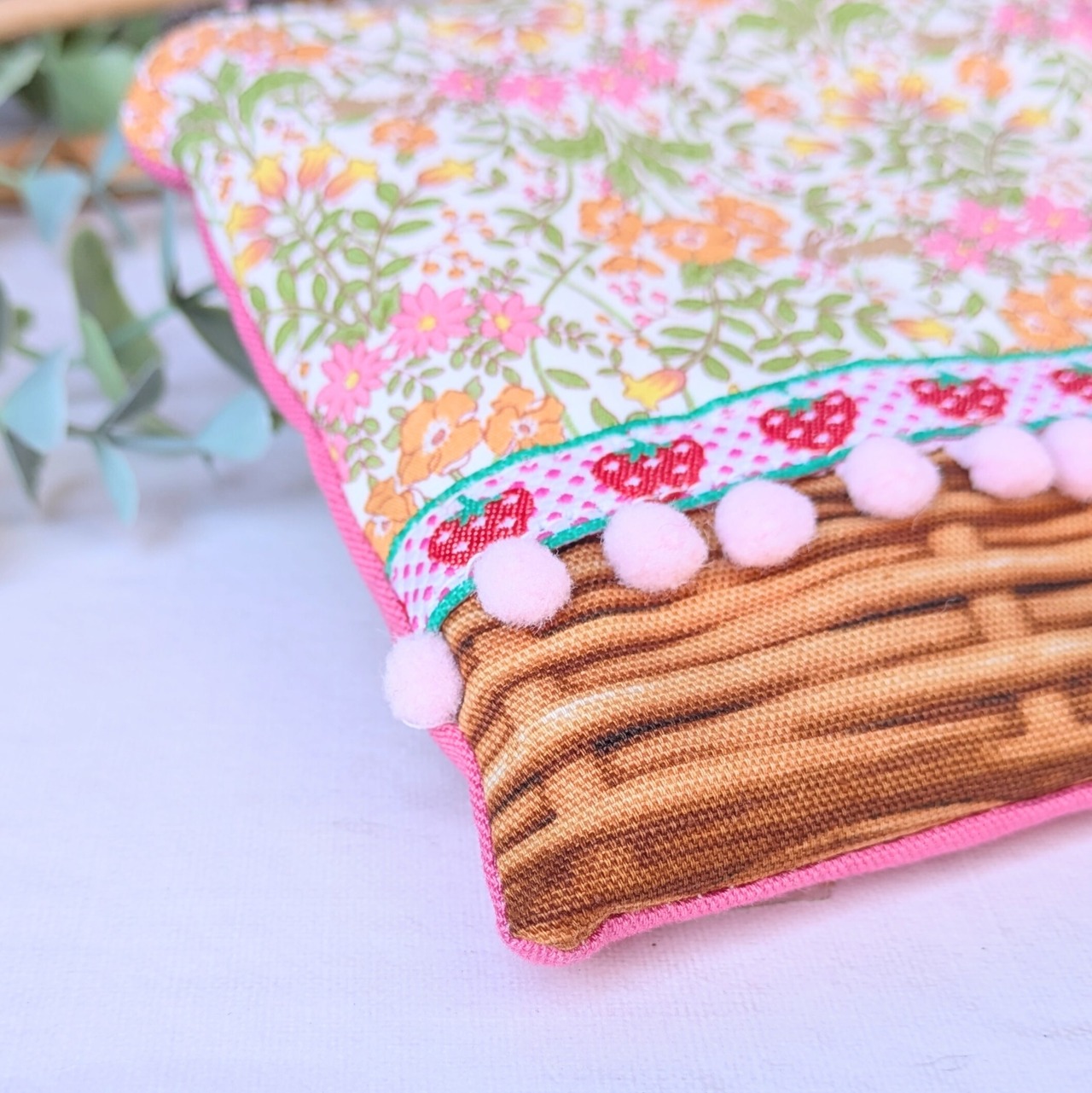 ピンクの無地生地が使われています。