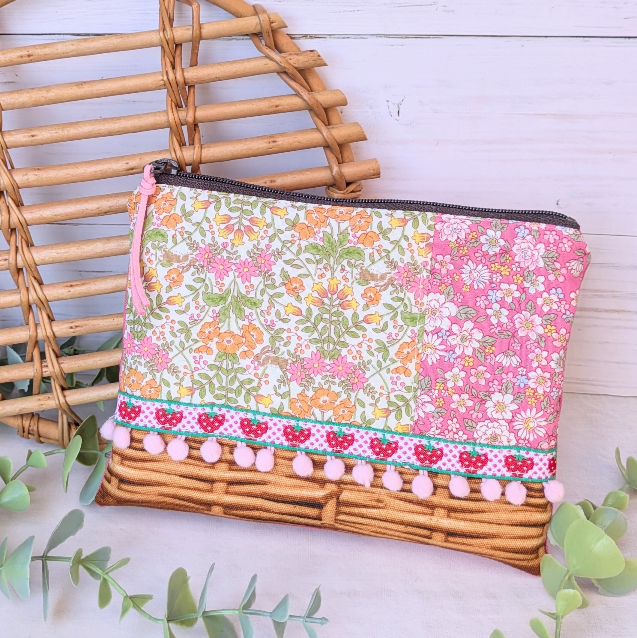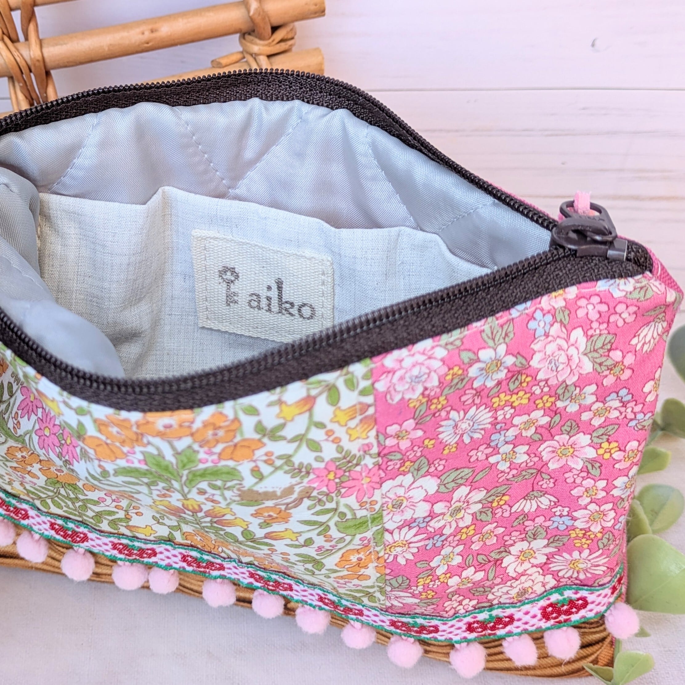 【aiko】さん / フラットファスナーポーチ(うさぎと花・ピンク)