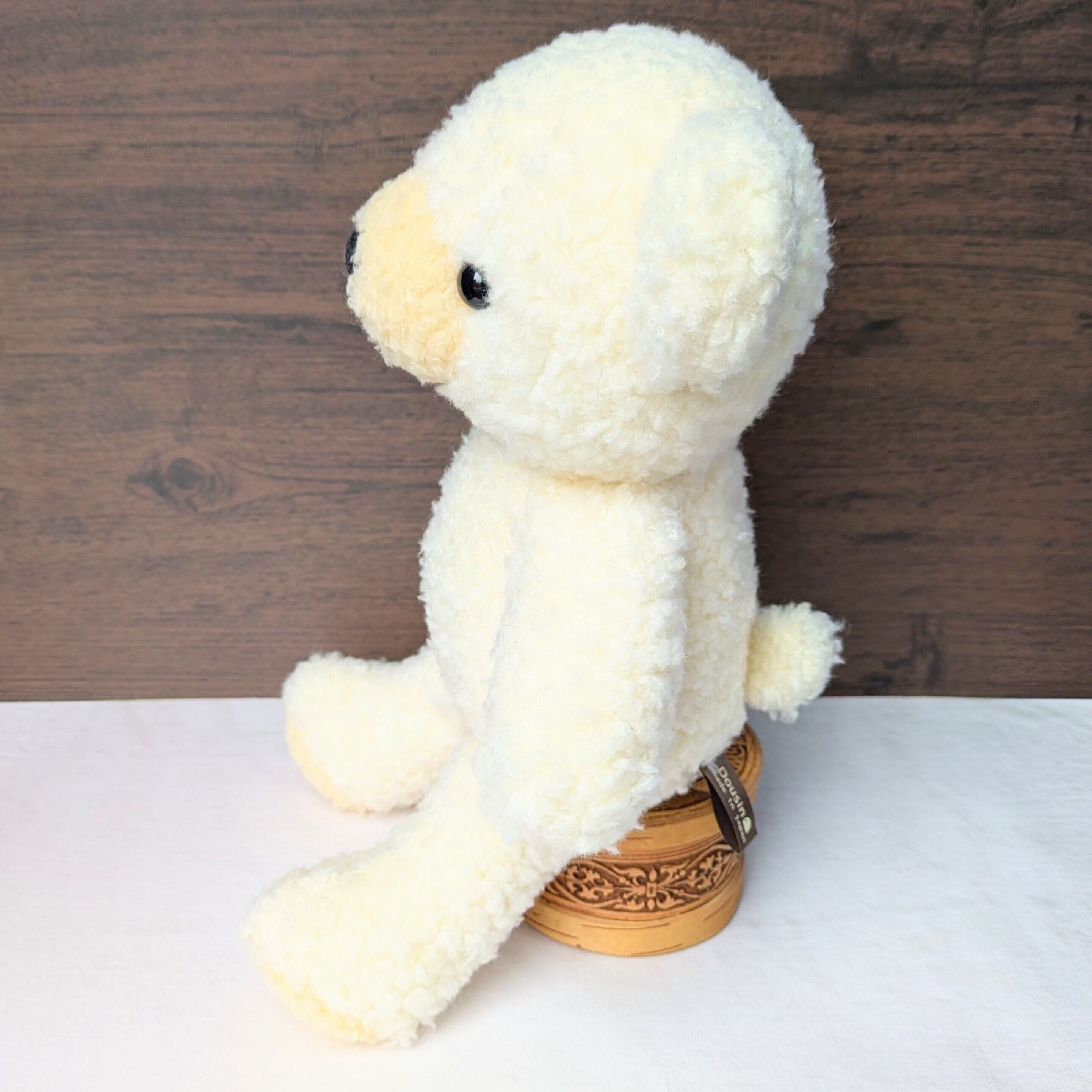 自立はしないつくりですが、寄り掛からせたりして様々なポーズを楽しめます。バッグに入れたり抱えたり、ぜひお出掛けのお供にもしてくださいね。