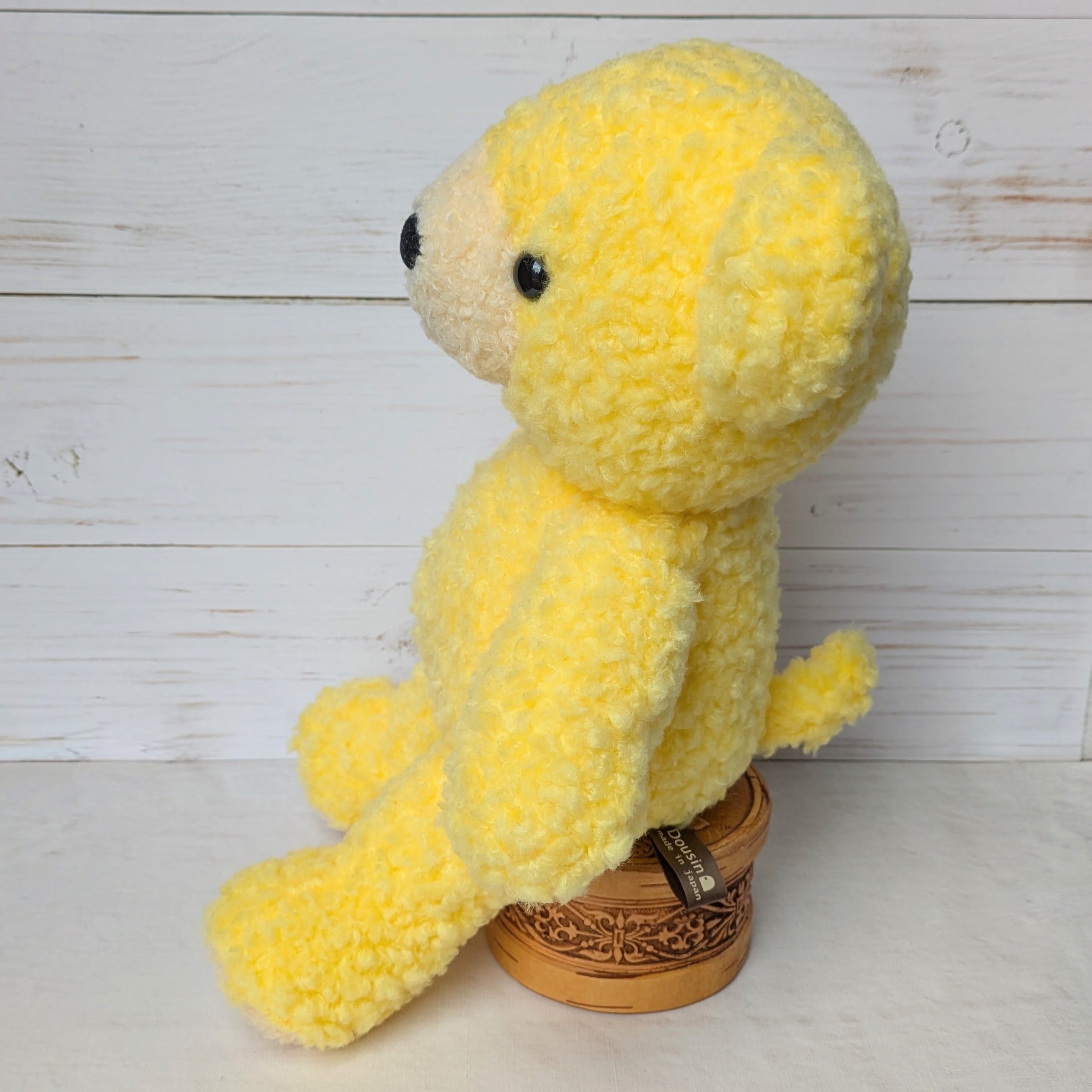 自立はしないつくりですが、寄り掛からせたりして様々なポーズを楽しめます。バッグに入れたり抱えたり、ぜひお出掛けのお供にもしてくださいね。