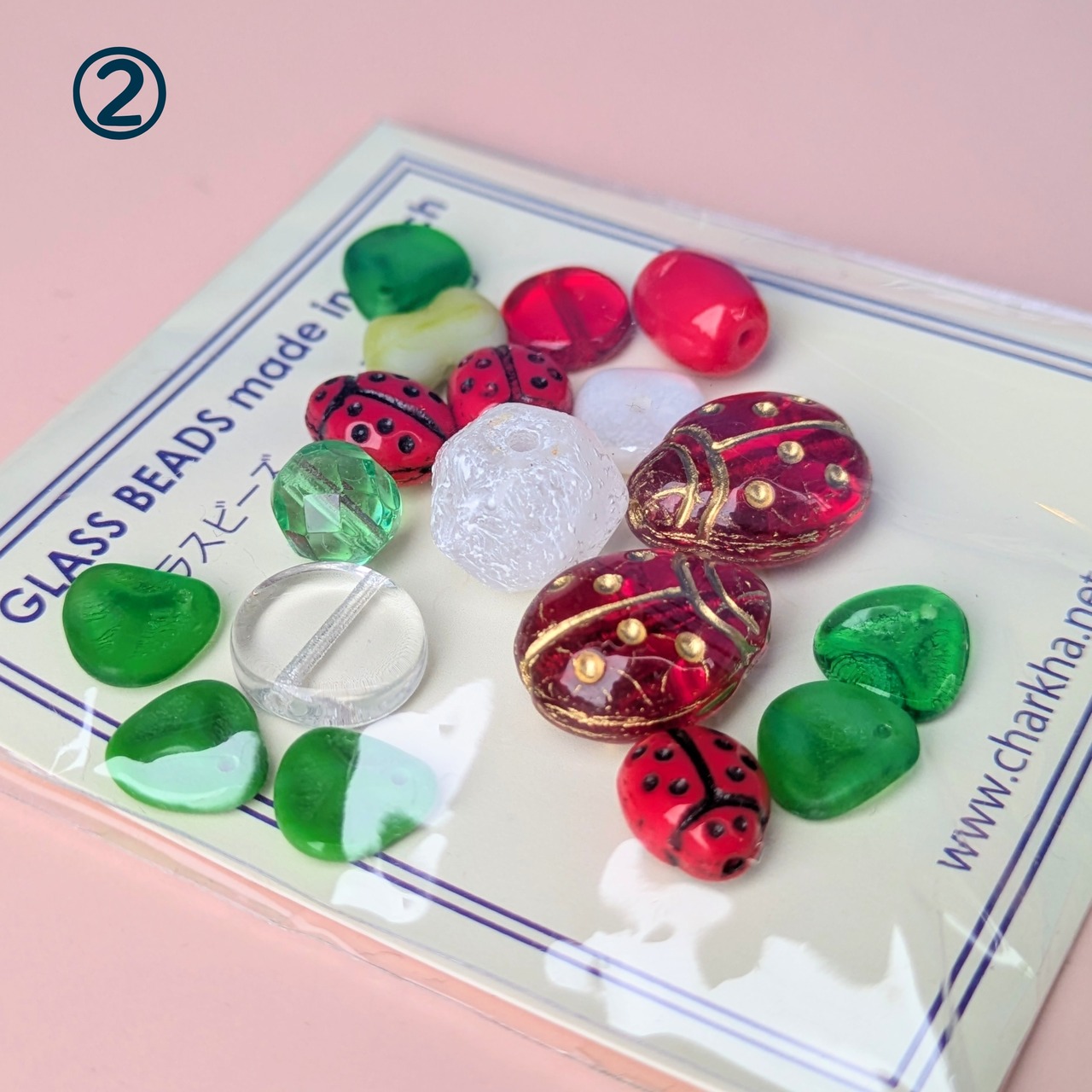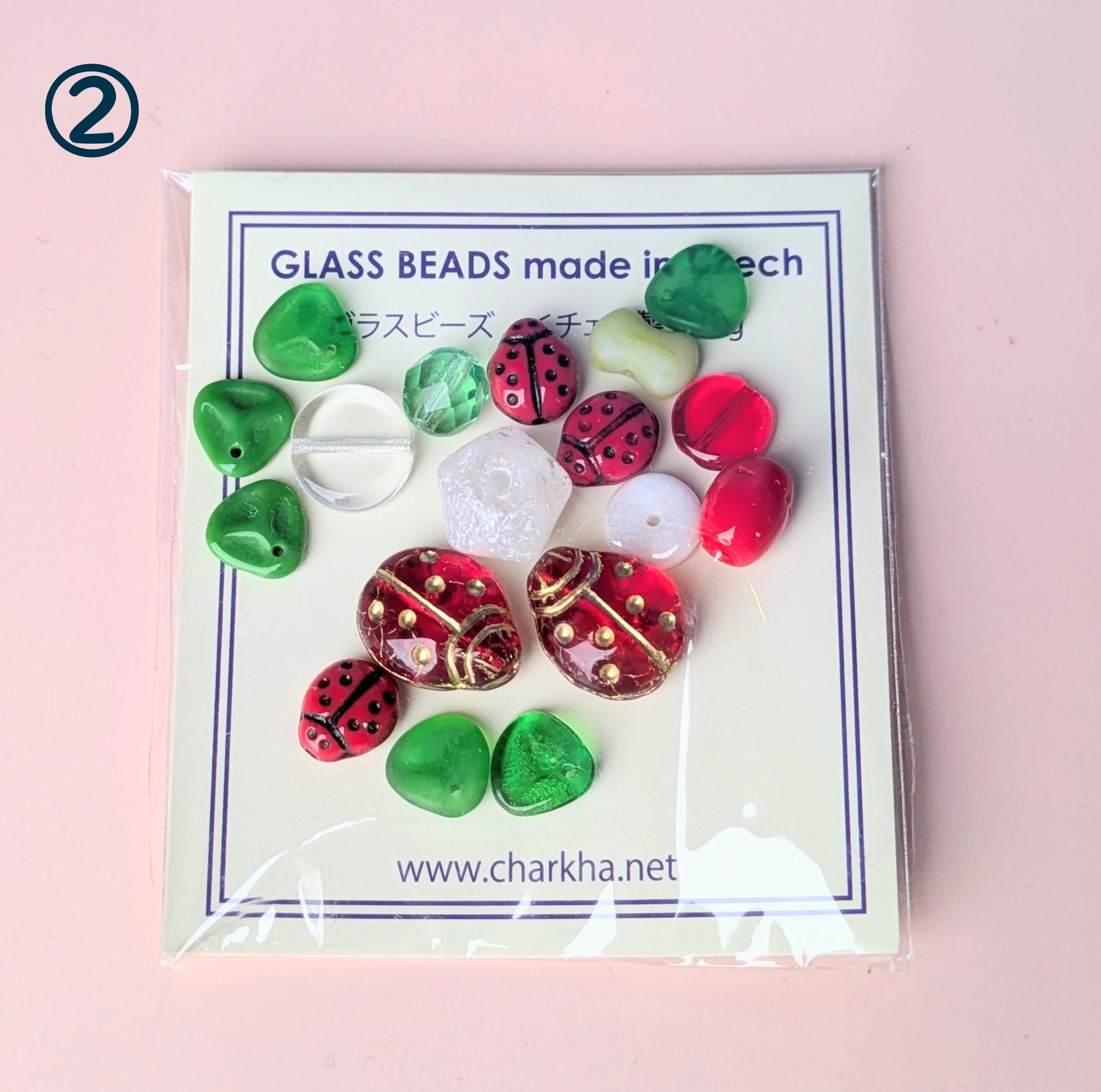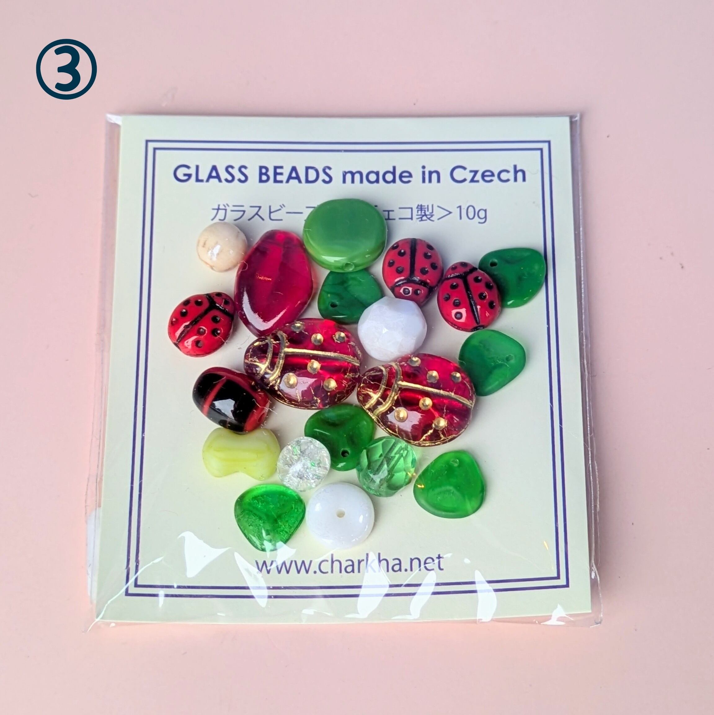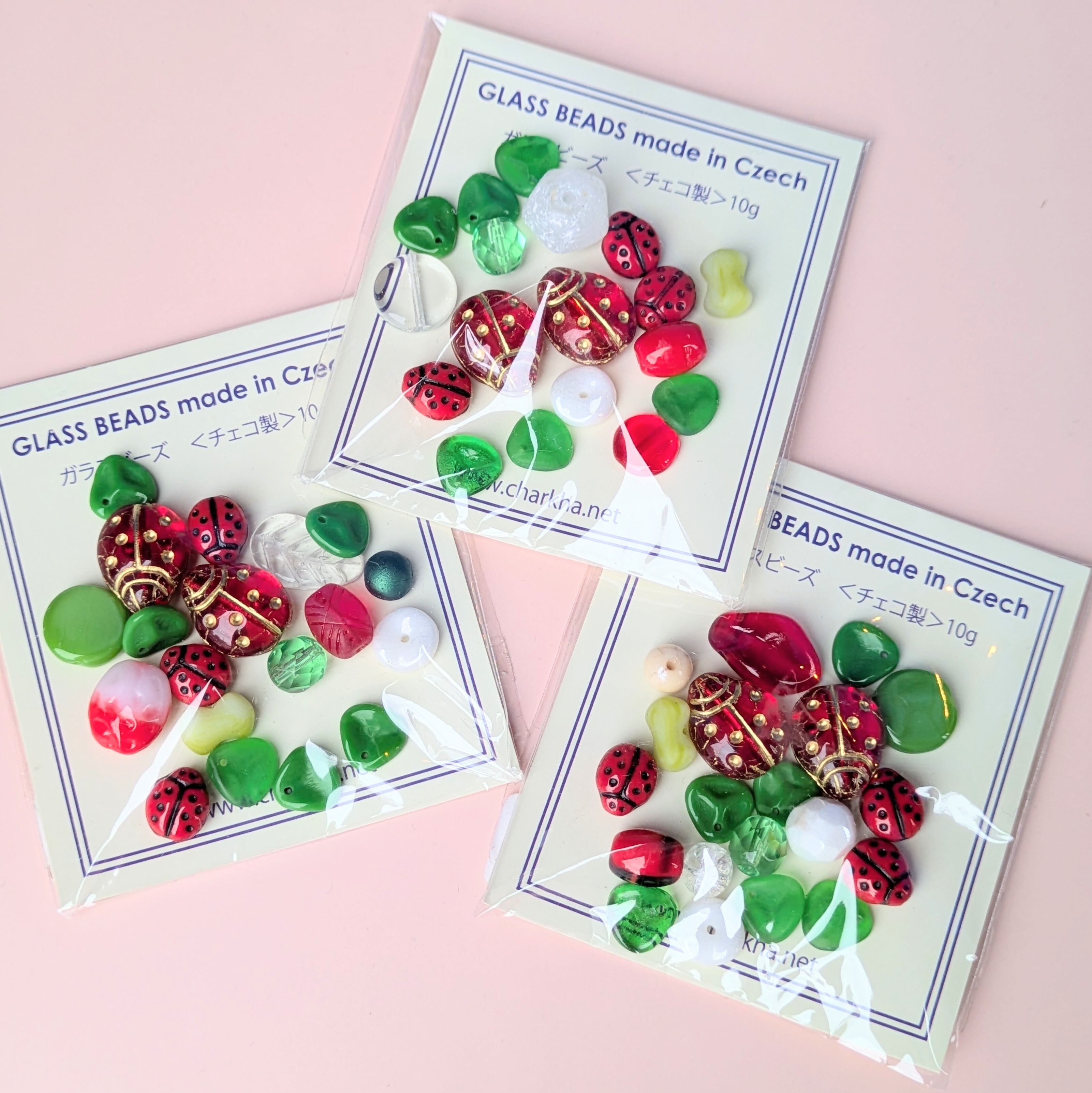 【チャルカ】チェコ製ガラスビーズのセット /てんとう虫MIX・B ①②③