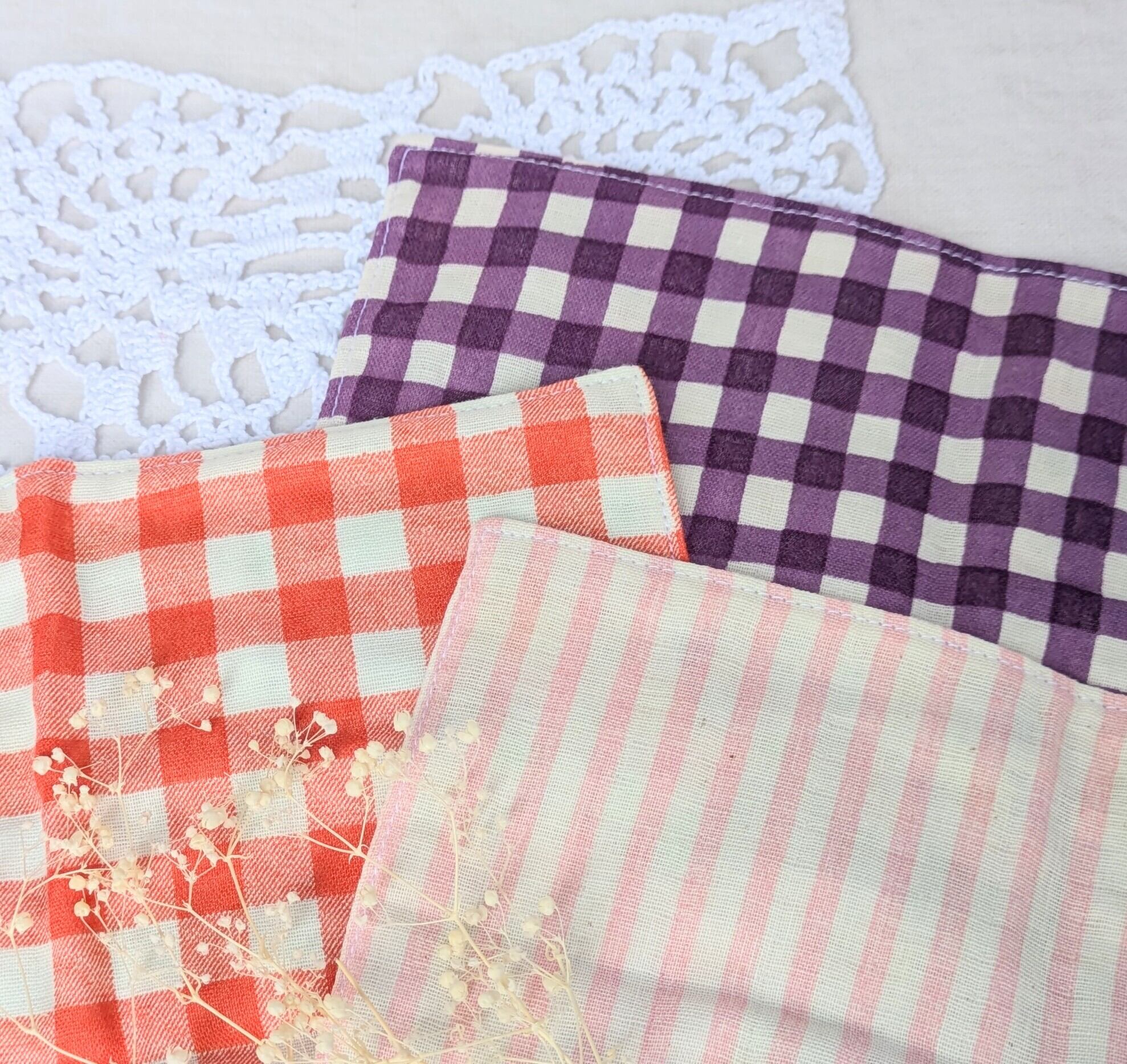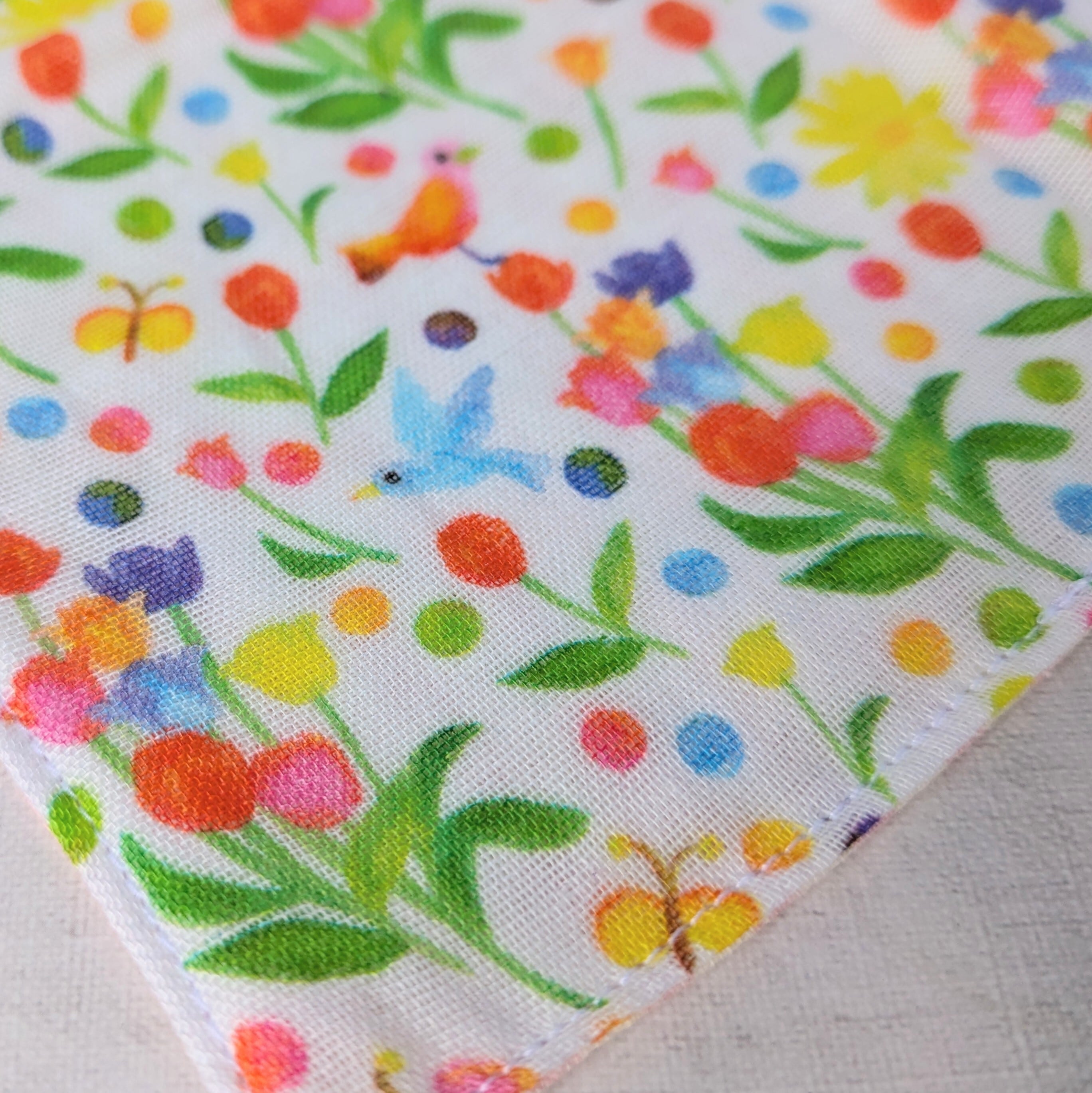 生地全面にプリントされたパターン柄で、明るく楽しい雰囲気のハンカチに仕上がっています♪