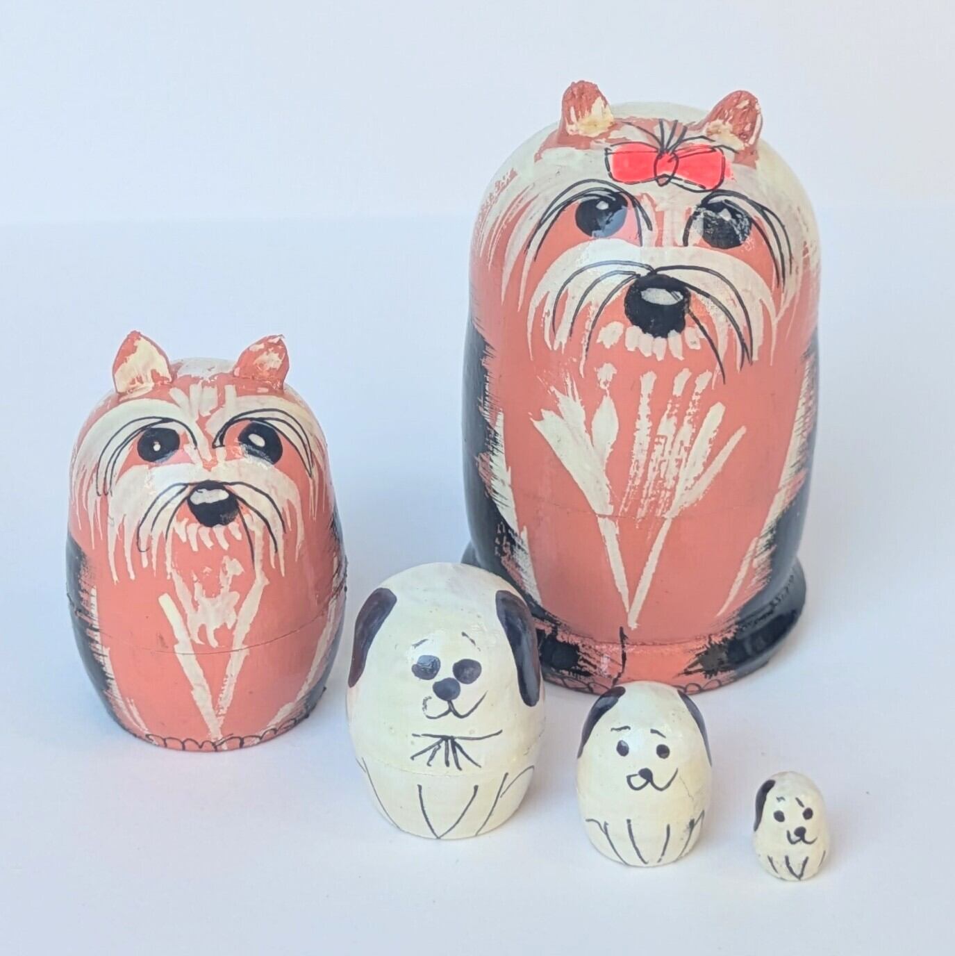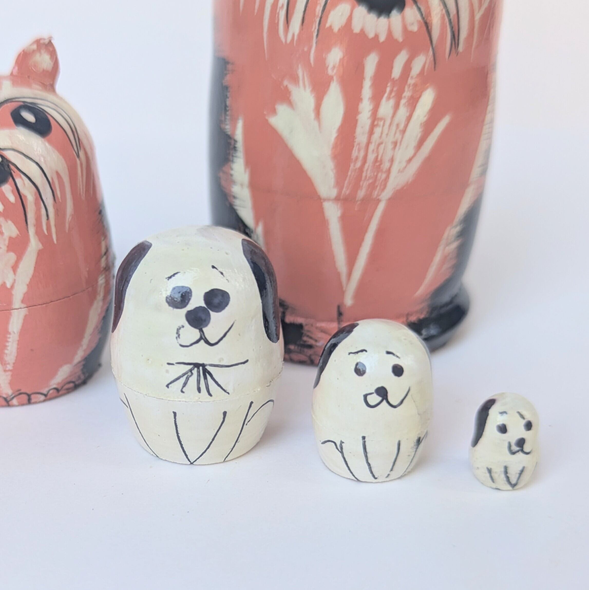【ロシア】ミニ動物モチーフマトリョーシカ・5個型(イヌ/リボン)