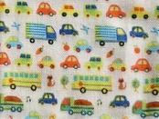 【nana】さん/イラスト・4重ガーゼハンカチ[トラックとバス/ドット濃紺]