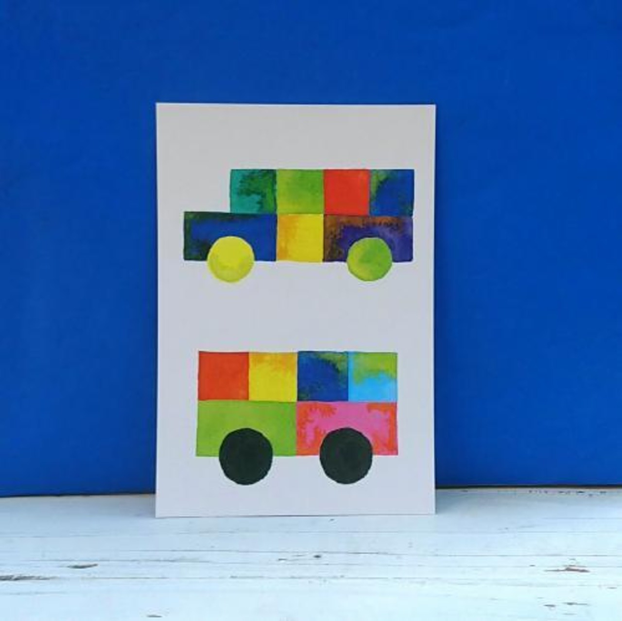 【nana】さん/イラストポストカード[積み木/トラック・バス]
