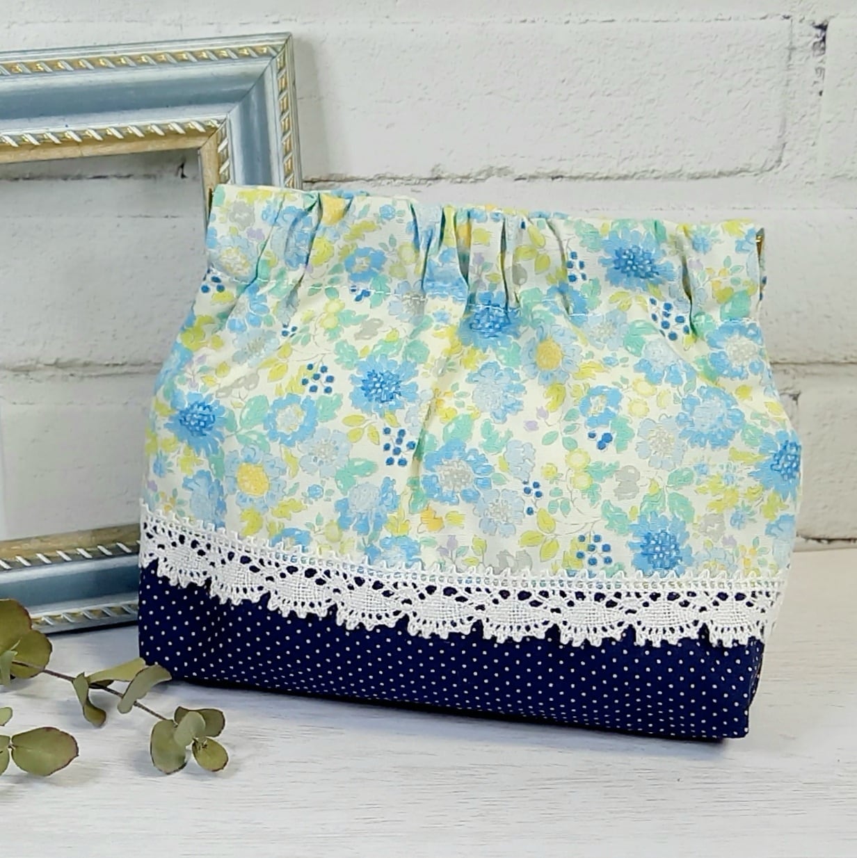 【marron】さん/ばね口ポーチ(花柄・青黄系)