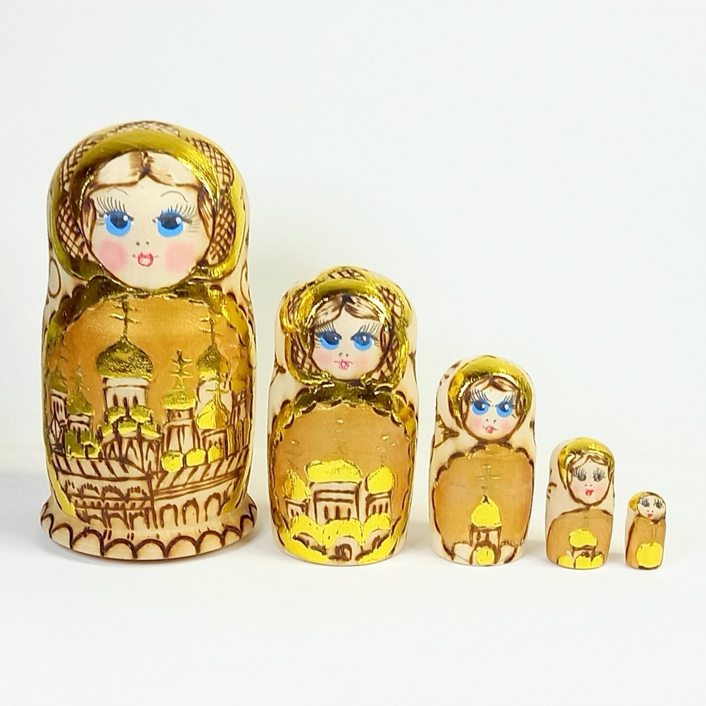 【ロシア】マトリョーシカ・5個型中 ニス無し白木(金茶)