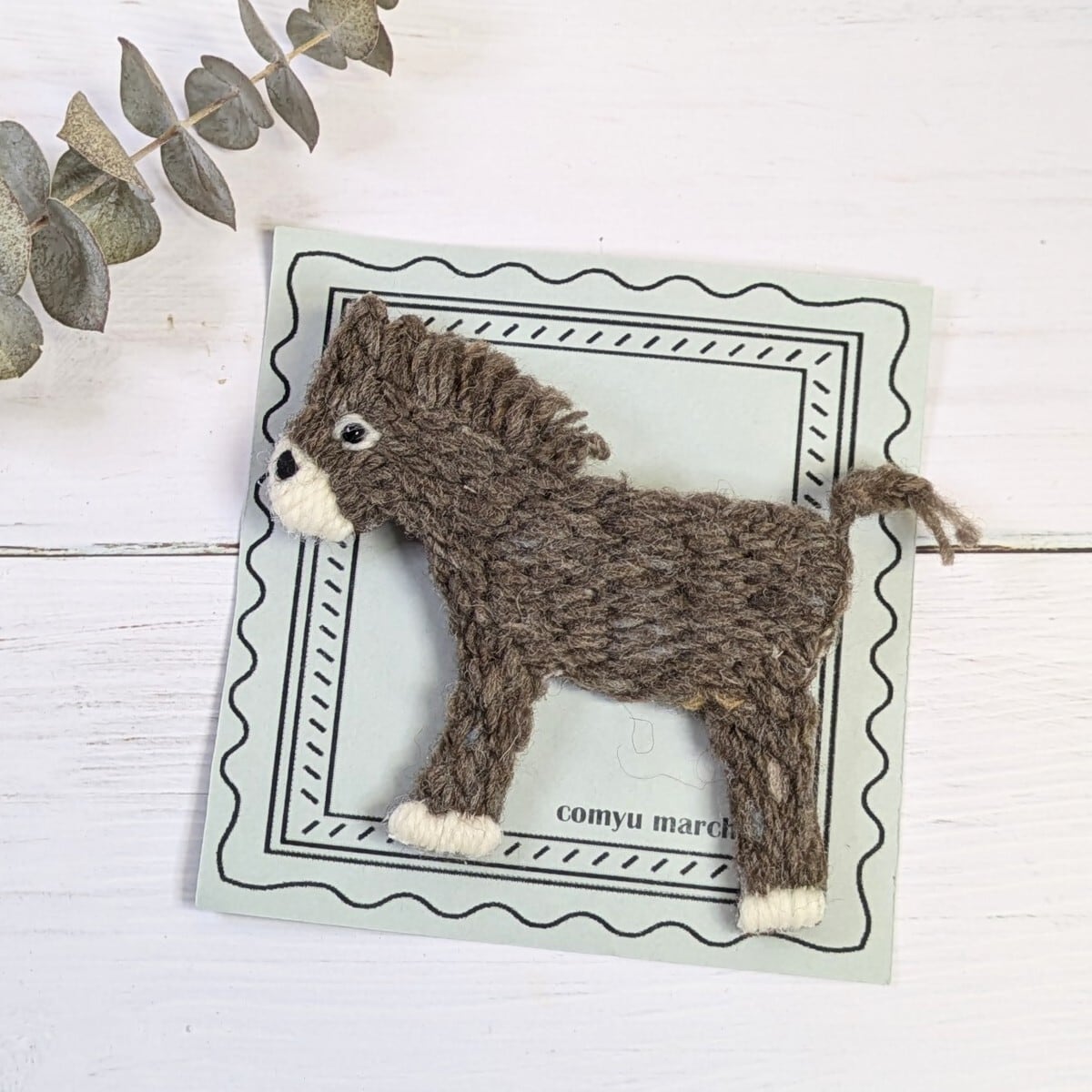【comyu marché】さん / ニット刺繍ブローチ(ロバ/茶)