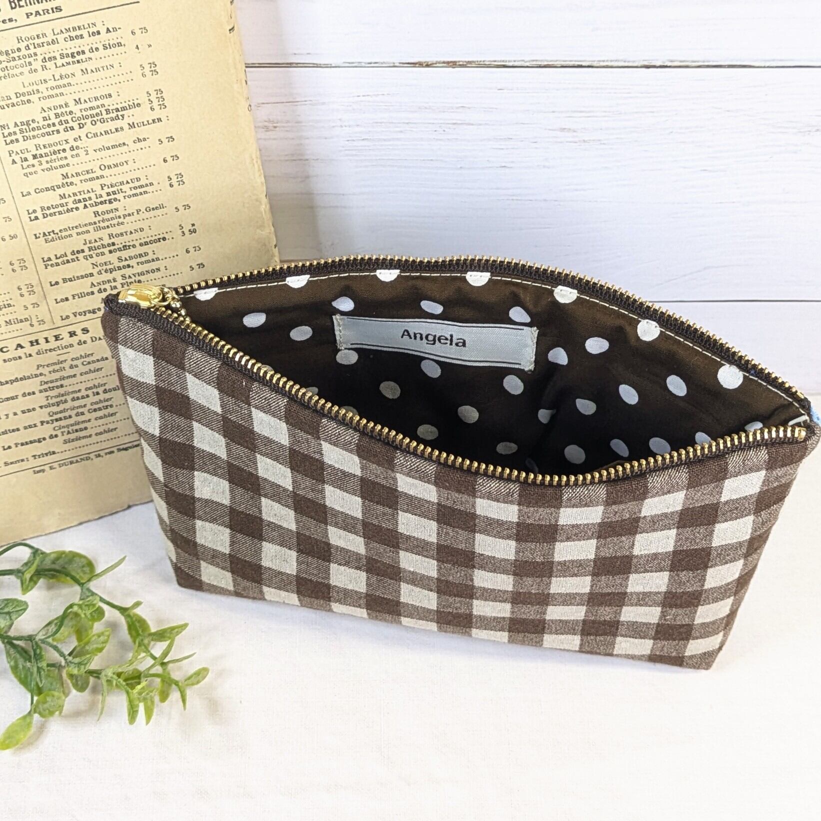 【Angela】さん / ポケット付きファスナーポーチ (フラワー/ブルー)