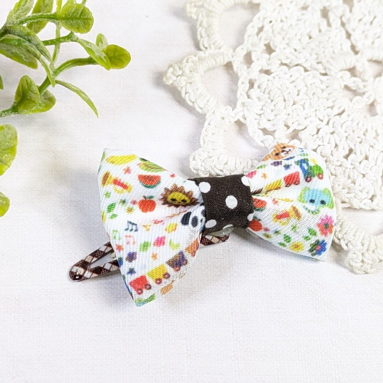 リボン部分は、オリジナルパターン柄がプリントされた可愛いツイル生地で仕立てられています。