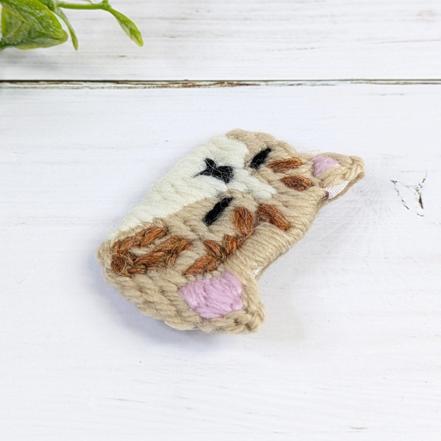 毛糸の素材感とユニークなアニマルモチーフが融合した、楽しいブローチです。