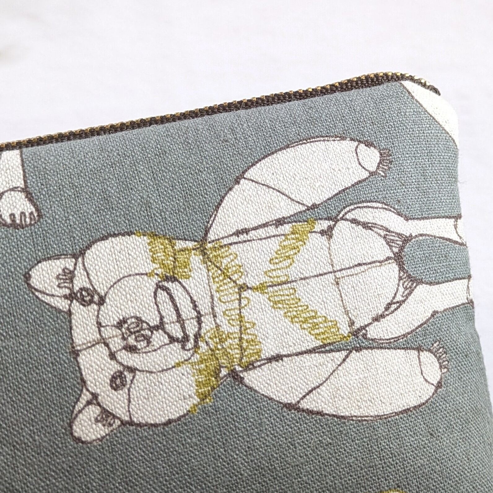 【Angela】さん / ポケット付きファスナーポーチ (ワイヤーくま/グレー)