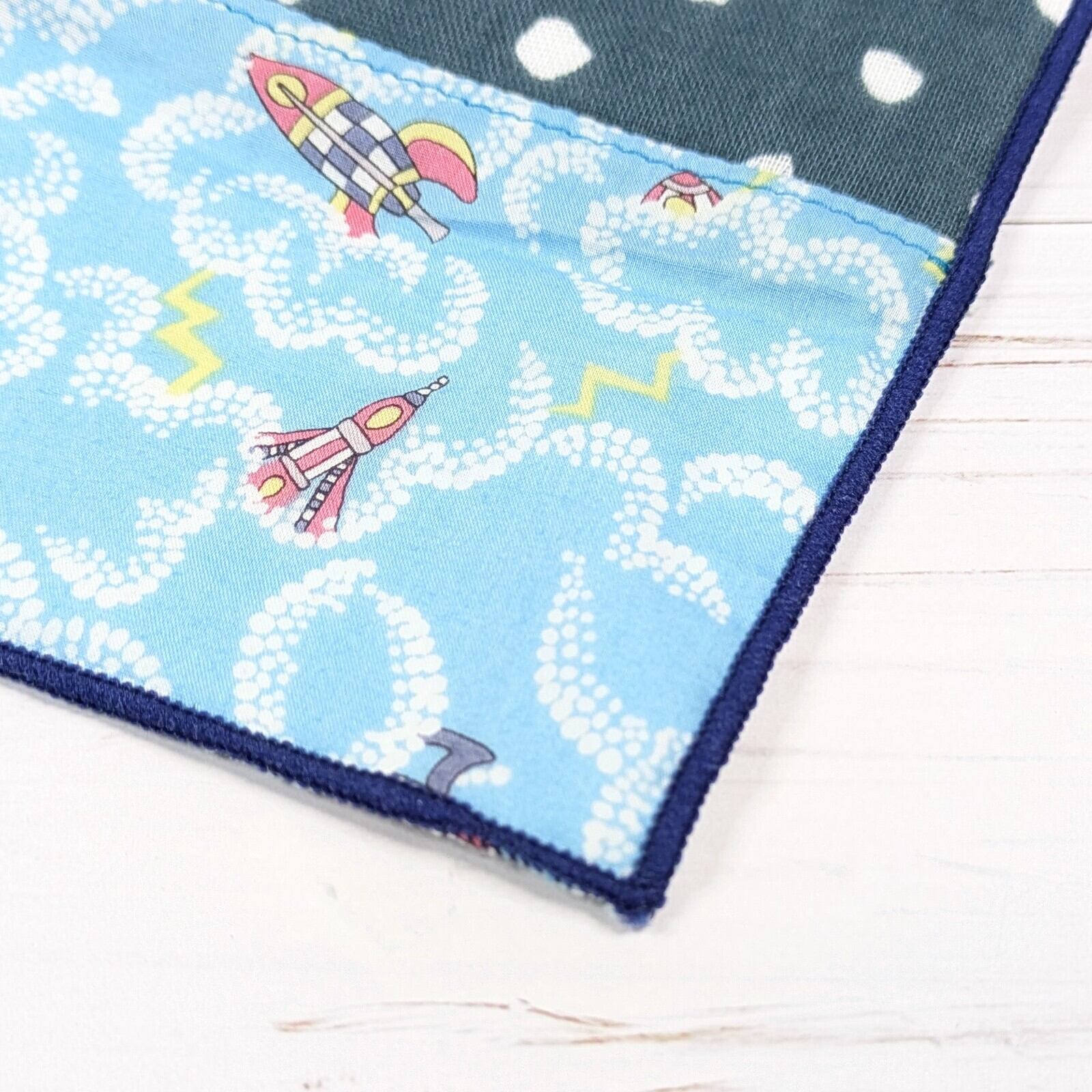 【屋根の小鳩】さん / リバティ&ガーゼ・ハーフハンカチ(くすみブルー地水玉)